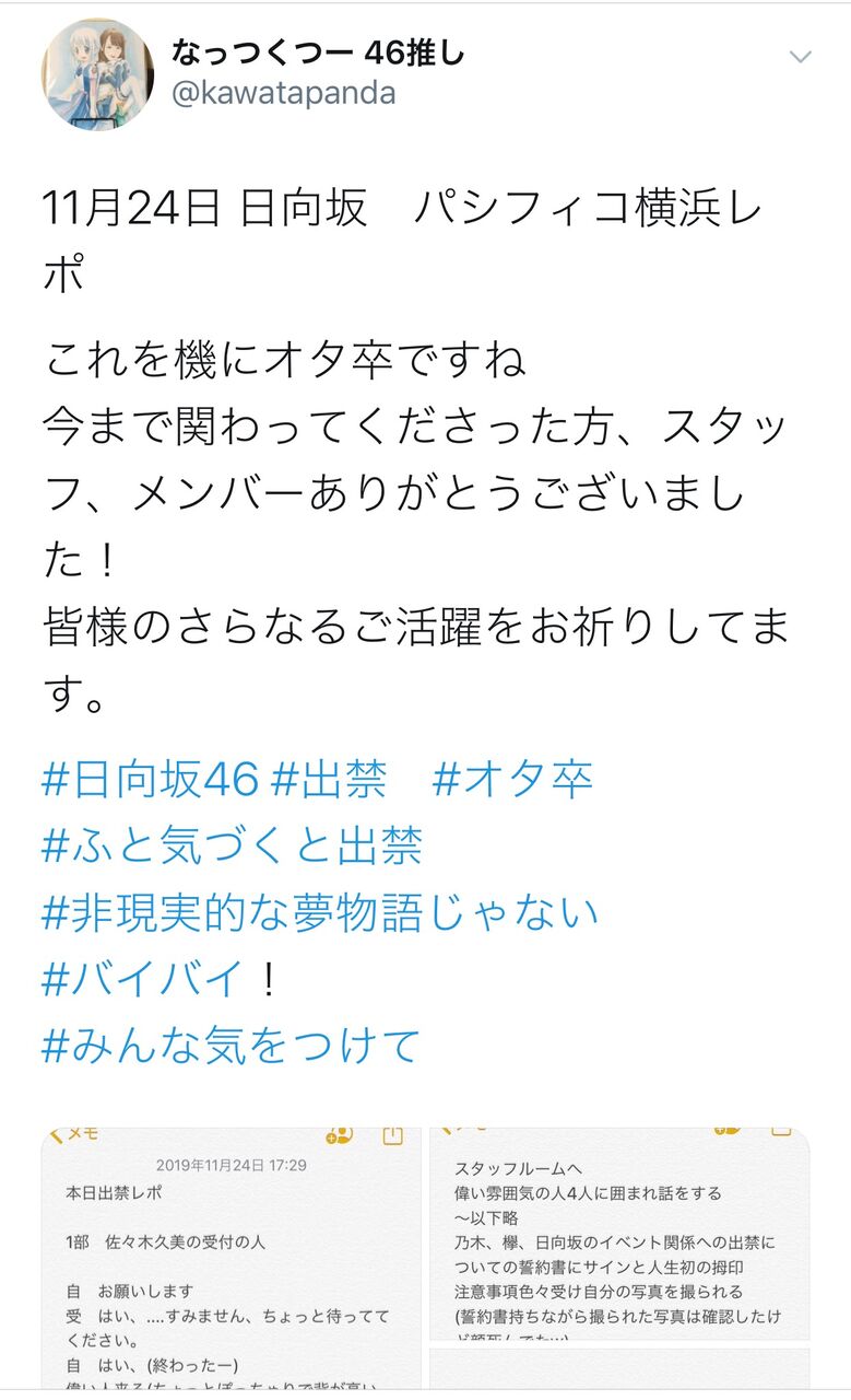 【悲報】日向坂46個別握手会で出禁事案発生wwwww 投稿日 2019年11月25日 12:30:03 (AKB関連) Tweet スポンサードリンク 続きを読む Source: AKB48タイムズ(AKB48まとめ) スポンサードリンク 続きを読む>> 最新情報 【朗報】AKB48のマレーシアイベント、大盛況で無事に終了!!! 【画像】この子アイドルで通用しますか?【HKT487期研究生 江浦優香13才】 【朗報】外ドラマ出演のAKB48山﨑空ちゃんの演技が上手いと話題に【あなたの恋人、強奪します。/そらら】 【朗報】近々新曲のMV撮影が行われる模様!【AKB48】 【朗報】19期研究生全員当たり!!!【AKB48劇場公演デビュー】 【朗報】ベルク×ニップン「AKB48 17期生 もちっとおいしいコラボキャンペーン」がスタート!!! 【速報】最新の久保怜音さんがキタ━━━━(゚∀゚)━━━━!!【元AKB48さとぴー】 【速報】STU48森下舞羽が卒業発表!!【まいはっち】 【AKB48】村山彩希さん、ついにインスタの個人アカウントを作る!!【ゆいリーInstagramデビュー】 【AKB48】クアラルンプール2日目、髙橋彩音ちゃんにぶっかけられて喜ぶ現地民をご覧下さい【マレーシア】 【悲報】地下アイドル現場怖い😱 女優業って正直ファンとしては辛い事ばかりで全然嬉しくないよね?【AKB48/SKE48/NMB48/HKT48/NGT48/STU48】 【朗報】元AKB48チームTP・邱品涵さん、福岡ソフトバンクホークスのチアガールに転身し大成功!!! 【AKB48】卒業記念生写真を出せるメンバーの基準ってどうなってんの? 【朗報】元AKB48奥原妃奈子さん、渋谷の大型ビジョンに現れる!【元チーム8ひーな】 昨日は岡田パッパの誕生日です【元AKB48岡田奈々】 【悲報】アイドルさん、ビラ配り中にまたしても酷い目に遭ってしまう【カリギュラのぶちあげイエロー担当ゆめぴりか】 【朗報】NGT48奈良未遥、ファースト写真集「こんな風に見られているのか?」7月1日発売決定!!! 【KLP48】クアラルンプール2日目に起こりそうなこと【AKB48】 今度こそ正真正銘のずっきーの谷間キタあああああ?【AKB48山内瑞葵】 【衝撃】松井珠理奈がアイドル復帰!マレーシア初の48姉妹グループ・KLP48プレイングマネージャーに就任決定!正式発表【元SKE48】 【AKB48】オリジナルステッカー販売終了のお知らせ【ピンポン玉チャレンジ】 【朗報】元馬嘉伶の真楪伶が1st写真集を発売決定!!【元AKB48・元まちゃりん・奇跡と出会った瞬間】 初めてAKB48劇場に入る私にアドバイス下さい!! スクエニ『トワツガイ』が僅か1年でサービス終了!大西桃香、渡辺みり愛、長谷川玲奈が実写化したのに【舞台化・元AKB48/元乃木坂46/元NGT48】 【悲報】=LOVE大谷映美里、体調不良のため本日の「個別お話し会」を欠席・・・【指原莉乃プロデュースアイドル・イコラブ・イコールラブ】 「ゆいずき」のダブルセンターというAKB48最強のカード【小栗有以・山内瑞葵】 【朗報】AKB48橋本陽菜、マレーシア移籍は断ったけど、旅行気分の数日間なら喜ぶ!!【はるぴょん】 【AKB48】メンバーが公演後に受け取ったファンレターをうpしてるのだが、どう思う? 【AKB48】正鋳真優「いつかAKBにチーム制を復活させたい」【まさるさん】 【AKB48】山根涼羽(19)、ジャニーズとの疑惑完全否定「絶対に何もありません」「私はずっとファンの皆様しか見てきておりません」 【悲報】地下民、リアルで学歴トークを繰り広げて生誕委員長に注意される・・・【AKB48/SKE48/NMB48/HKT48/NGT48/STU48/チーム8】