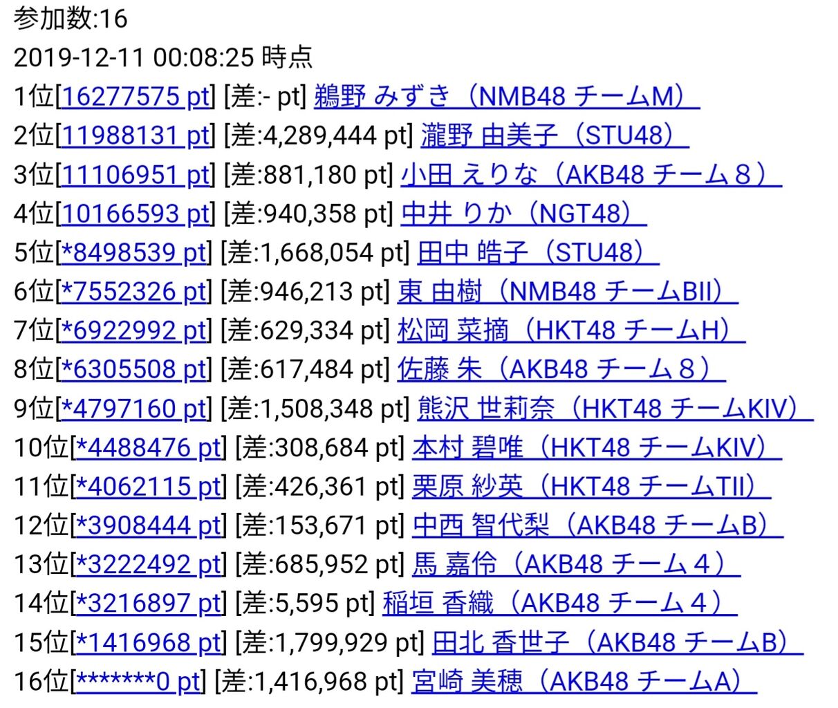 【悲報】NGT48中井りかさん1位に610万ポイントも離される!!【AKB48G TGC出演権獲得イベント】 投稿日 2019年12月11日 09:10:41 (AKB関連) Tweet スポンサードリンク 続きを読む Source: AKB48タイムズ(AKB48まとめ) スポンサードリンク 続きを読む>> 最新情報 【朗報】AKB48のマレーシアイベント、大盛況で無事に終了!!! 【画像】この子アイドルで通用しますか?【HKT487期研究生 江浦優香13才】 【朗報】外ドラマ出演のAKB48山﨑空ちゃんの演技が上手いと話題に【あなたの恋人、強奪します。/そらら】 【朗報】近々新曲のMV撮影が行われる模様!【AKB48】 【朗報】19期研究生全員当たり!!!【AKB48劇場公演デビュー】 【朗報】ベルク×ニップン「AKB48 17期生 もちっとおいしいコラボキャンペーン」がスタート!!! 【速報】最新の久保怜音さんがキタ━━━━(゚∀゚)━━━━!!【元AKB48さとぴー】 【速報】STU48森下舞羽が卒業発表!!【まいはっち】 【AKB48】村山彩希さん、ついにインスタの個人アカウントを作る!!【ゆいリーInstagramデビュー】 【AKB48】クアラルンプール2日目、髙橋彩音ちゃんにぶっかけられて喜ぶ現地民をご覧下さい【マレーシア】 【悲報】地下アイドル現場怖い😱 女優業って正直ファンとしては辛い事ばかりで全然嬉しくないよね?【AKB48/SKE48/NMB48/HKT48/NGT48/STU48】 【朗報】元AKB48チームTP・邱品涵さん、福岡ソフトバンクホークスのチアガールに転身し大成功!!! 【AKB48】卒業記念生写真を出せるメンバーの基準ってどうなってんの? 【朗報】元AKB48奥原妃奈子さん、渋谷の大型ビジョンに現れる!【元チーム8ひーな】 昨日は岡田パッパの誕生日です【元AKB48岡田奈々】 【悲報】アイドルさん、ビラ配り中にまたしても酷い目に遭ってしまう【カリギュラのぶちあげイエロー担当ゆめぴりか】 【朗報】NGT48奈良未遥、ファースト写真集「こんな風に見られているのか?」7月1日発売決定!!! 【KLP48】クアラルンプール2日目に起こりそうなこと【AKB48】 今度こそ正真正銘のずっきーの谷間キタあああああ?【AKB48山内瑞葵】 【衝撃】松井珠理奈がアイドル復帰!マレーシア初の48姉妹グループ・KLP48プレイングマネージャーに就任決定!正式発表【元SKE48】 【AKB48】オリジナルステッカー販売終了のお知らせ【ピンポン玉チャレンジ】 【朗報】元馬嘉伶の真楪伶が1st写真集を発売決定!!【元AKB48・元まちゃりん・奇跡と出会った瞬間】 初めてAKB48劇場に入る私にアドバイス下さい!! スクエニ『トワツガイ』が僅か1年でサービス終了!大西桃香、渡辺みり愛、長谷川玲奈が実写化したのに【舞台化・元AKB48/元乃木坂46/元NGT48】 【悲報】=LOVE大谷映美里、体調不良のため本日の「個別お話し会」を欠席・・・【指原莉乃プロデュースアイドル・イコラブ・イコールラブ】 「ゆいずき」のダブルセンターというAKB48最強のカード【小栗有以・山内瑞葵】 【朗報】AKB48橋本陽菜、マレーシア移籍は断ったけど、旅行気分の数日間なら喜ぶ!!【はるぴょん】 【AKB48】メンバーが公演後に受け取ったファンレターをうpしてるのだが、どう思う? 【AKB48】正鋳真優「いつかAKBにチーム制を復活させたい」【まさるさん】 嵐にもあった不人気時代、CD売上げアップのための“秘策”とは? 【動画】NGT48山口真帆暴行事件のちょうど1年後の同時刻に荻野由佳が襲撃ドッキリwww【中井りか】