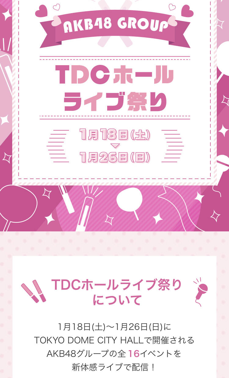【2020年 1/18~1/26】AKB48グループTDCホール ライブ祭り「新体感ライブ生配信」は1公演3300円【AKB48/SKE48/NMB48/HKT48/NGT48/STU48/チーム8】