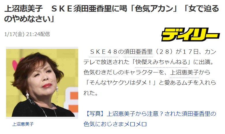 上沼恵美子 SKE48須田亜香里に喝「色気アカン」「女で迫るのやめなさい」 投稿日 2020年1月18日 15:59:42 (AKB関連) Tweet スポンサードリンク 続きを読む Source: AKB48タイムズ(AKB48まとめ) スポンサードリンク 続きを読む>> 最新情報 【朗報】AKB48のマレーシアイベント、大盛況で無事に終了!!! 【画像】この子アイドルで通用しますか?【HKT487期研究生 江浦優香13才】 【朗報】外ドラマ出演のAKB48山﨑空ちゃんの演技が上手いと話題に【あなたの恋人、強奪します。/そらら】 【朗報】近々新曲のMV撮影が行われる模様!【AKB48】 【朗報】19期研究生全員当たり!!!【AKB48劇場公演デビュー】 【朗報】ベルク×ニップン「AKB48 17期生 もちっとおいしいコラボキャンペーン」がスタート!!! 【速報】最新の久保怜音さんがキタ━━━━(゚∀゚)━━━━!!【元AKB48さとぴー】 【速報】STU48森下舞羽が卒業発表!!【まいはっち】 【AKB48】村山彩希さん、ついにインスタの個人アカウントを作る!!【ゆいリーInstagramデビュー】 【AKB48】クアラルンプール2日目、髙橋彩音ちゃんにぶっかけられて喜ぶ現地民をご覧下さい【マレーシア】 【悲報】地下アイドル現場怖い😱 女優業って正直ファンとしては辛い事ばかりで全然嬉しくないよね?【AKB48/SKE48/NMB48/HKT48/NGT48/STU48】 【朗報】元AKB48チームTP・邱品涵さん、福岡ソフトバンクホークスのチアガールに転身し大成功!!! 【AKB48】卒業記念生写真を出せるメンバーの基準ってどうなってんの? 【朗報】元AKB48奥原妃奈子さん、渋谷の大型ビジョンに現れる!【元チーム8ひーな】 昨日は岡田パッパの誕生日です【元AKB48岡田奈々】 【悲報】アイドルさん、ビラ配り中にまたしても酷い目に遭ってしまう【カリギュラのぶちあげイエロー担当ゆめぴりか】 【朗報】NGT48奈良未遥、ファースト写真集「こんな風に見られているのか?」7月1日発売決定!!! 【KLP48】クアラルンプール2日目に起こりそうなこと【AKB48】 今度こそ正真正銘のずっきーの谷間キタあああああ?【AKB48山内瑞葵】 【衝撃】松井珠理奈がアイドル復帰!マレーシア初の48姉妹グループ・KLP48プレイングマネージャーに就任決定!正式発表【元SKE48】 【AKB48】オリジナルステッカー販売終了のお知らせ【ピンポン玉チャレンジ】 【朗報】元馬嘉伶の真楪伶が1st写真集を発売決定!!【元AKB48・元まちゃりん・奇跡と出会った瞬間】 初めてAKB48劇場に入る私にアドバイス下さい!! スクエニ『トワツガイ』が僅か1年でサービス終了!大西桃香、渡辺みり愛、長谷川玲奈が実写化したのに【舞台化・元AKB48/元乃木坂46/元NGT48】 【悲報】=LOVE大谷映美里、体調不良のため本日の「個別お話し会」を欠席・・・【指原莉乃プロデュースアイドル・イコラブ・イコールラブ】 「ゆいずき」のダブルセンターというAKB48最強のカード【小栗有以・山内瑞葵】 【朗報】AKB48橋本陽菜、マレーシア移籍は断ったけど、旅行気分の数日間なら喜ぶ!!【はるぴょん】 【AKB48】メンバーが公演後に受け取ったファンレターをうpしてるのだが、どう思う? 【AKB48】正鋳真優「いつかAKBにチーム制を復活させたい」【まさるさん】 TOKIOで好きな曲www 【朗報】元NMB48植村梓のおっぱああああいwwwww【画像】