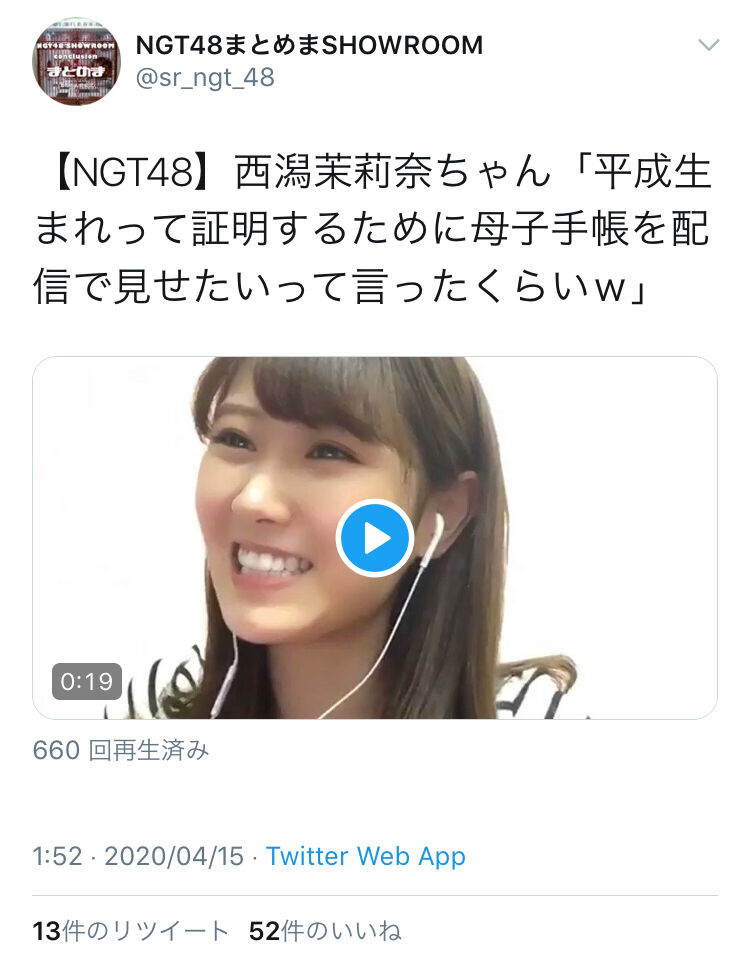 【朗報】NGT48西潟茉莉奈ちゃんが年齢詐称疑惑に言及wwwww 投稿日 2020年4月18日 16:29:14 (AKB関連) Tweet スポンサードリンク 続きを読む Source: AKB48タイムズ(AKB48まとめ) スポンサードリンク 続きを読む>> 最新情報 【朗報】AKB48のマレーシアイベント、大盛況で無事に終了!!! 【画像】この子アイドルで通用しますか?【HKT487期研究生 江浦優香13才】 【朗報】外ドラマ出演のAKB48山﨑空ちゃんの演技が上手いと話題に【あなたの恋人、強奪します。/そらら】 【朗報】近々新曲のMV撮影が行われる模様!【AKB48】 【朗報】19期研究生全員当たり!!!【AKB48劇場公演デビュー】 【朗報】ベルク×ニップン「AKB48 17期生 もちっとおいしいコラボキャンペーン」がスタート!!! 【速報】最新の久保怜音さんがキタ━━━━(゚∀゚)━━━━!!【元AKB48さとぴー】 【速報】STU48森下舞羽が卒業発表!!【まいはっち】 【AKB48】村山彩希さん、ついにインスタの個人アカウントを作る!!【ゆいリーInstagramデビュー】 【AKB48】クアラルンプール2日目、髙橋彩音ちゃんにぶっかけられて喜ぶ現地民をご覧下さい【マレーシア】 【悲報】地下アイドル現場怖い😱 女優業って正直ファンとしては辛い事ばかりで全然嬉しくないよね?【AKB48/SKE48/NMB48/HKT48/NGT48/STU48】 【朗報】元AKB48チームTP・邱品涵さん、福岡ソフトバンクホークスのチアガールに転身し大成功!!! 【AKB48】卒業記念生写真を出せるメンバーの基準ってどうなってんの? 【朗報】元AKB48奥原妃奈子さん、渋谷の大型ビジョンに現れる!【元チーム8ひーな】 昨日は岡田パッパの誕生日です【元AKB48岡田奈々】 【悲報】アイドルさん、ビラ配り中にまたしても酷い目に遭ってしまう【カリギュラのぶちあげイエロー担当ゆめぴりか】 【朗報】NGT48奈良未遥、ファースト写真集「こんな風に見られているのか?」7月1日発売決定!!! 【KLP48】クアラルンプール2日目に起こりそうなこと【AKB48】 今度こそ正真正銘のずっきーの谷間キタあああああ?【AKB48山内瑞葵】 【衝撃】松井珠理奈がアイドル復帰!マレーシア初の48姉妹グループ・KLP48プレイングマネージャーに就任決定!正式発表【元SKE48】 【AKB48】オリジナルステッカー販売終了のお知らせ【ピンポン玉チャレンジ】 【朗報】元馬嘉伶の真楪伶が1st写真集を発売決定!!【元AKB48・元まちゃりん・奇跡と出会った瞬間】 初めてAKB48劇場に入る私にアドバイス下さい!! スクエニ『トワツガイ』が僅か1年でサービス終了!大西桃香、渡辺みり愛、長谷川玲奈が実写化したのに【舞台化・元AKB48/元乃木坂46/元NGT48】 【悲報】=LOVE大谷映美里、体調不良のため本日の「個別お話し会」を欠席・・・【指原莉乃プロデュースアイドル・イコラブ・イコールラブ】 「ゆいずき」のダブルセンターというAKB48最強のカード【小栗有以・山内瑞葵】 【朗報】AKB48橋本陽菜、マレーシア移籍は断ったけど、旅行気分の数日間なら喜ぶ!!【はるぴょん】 【AKB48】メンバーが公演後に受け取ったファンレターをうpしてるのだが、どう思う? 【AKB48】正鋳真優「いつかAKBにチーム制を復活させたい」【まさるさん】 【NGT48暴行事件】AKB48グループは2019年1月8日で間違いなく死んだ?【AKB48/SKE48/NMB48/HKT48/NGT48/STU48/チーム8】 【悲報】AKB48大盛真歩にハートタワーを投げたヲタ、お礼をスルーされる・・・【まほぴょん・SHOWROOM】