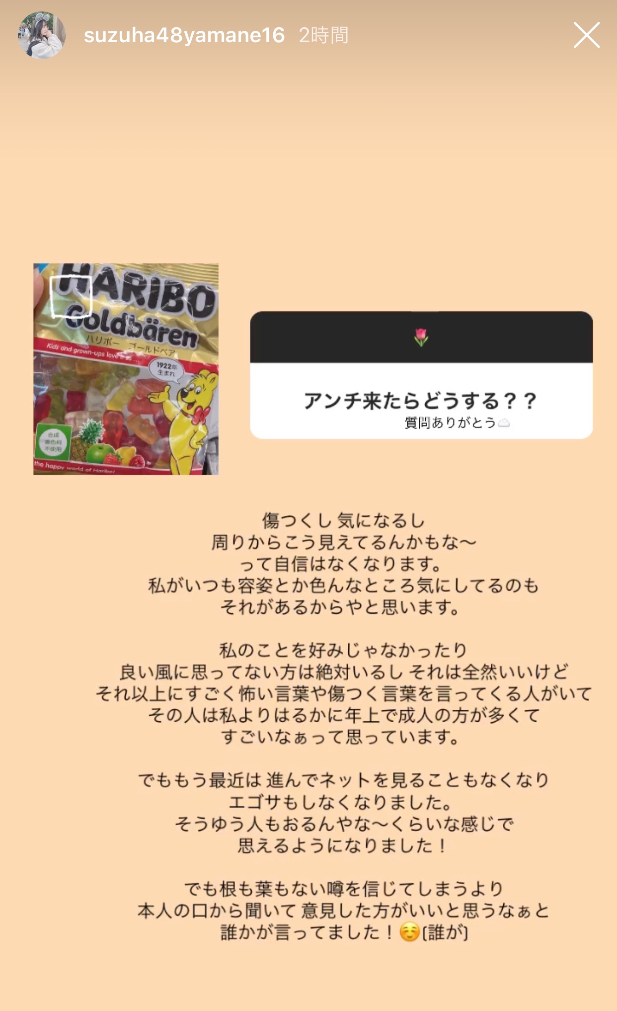 【AKB48】ずんちゃん(19才)「私より遥かに年上で成人の方が凄く怖い言葉や傷付く言葉を言ってきてすごいなぁって思う」【山根涼羽】 投稿日 2020年4月20日 12:48:06 (AKB関連) Tweet スポンサードリンク 続きを読む Source: AKB48タイムズ(AKB48まとめ) スポンサードリンク 続きを読む>> 最新情報 【朗報】AKB48のマレーシアイベント、大盛況で無事に終了!!! 【画像】この子アイドルで通用しますか?【HKT487期研究生 江浦優香13才】 【朗報】外ドラマ出演のAKB48山﨑空ちゃんの演技が上手いと話題に【あなたの恋人、強奪します。/そらら】 【朗報】近々新曲のMV撮影が行われる模様!【AKB48】 【朗報】19期研究生全員当たり!!!【AKB48劇場公演デビュー】 【朗報】ベルク×ニップン「AKB48 17期生 もちっとおいしいコラボキャンペーン」がスタート!!! 【速報】最新の久保怜音さんがキタ━━━━(゚∀゚)━━━━!!【元AKB48さとぴー】 【速報】STU48森下舞羽が卒業発表!!【まいはっち】 【AKB48】村山彩希さん、ついにインスタの個人アカウントを作る!!【ゆいリーInstagramデビュー】 【AKB48】クアラルンプール2日目、髙橋彩音ちゃんにぶっかけられて喜ぶ現地民をご覧下さい【マレーシア】 【悲報】地下アイドル現場怖い😱 女優業って正直ファンとしては辛い事ばかりで全然嬉しくないよね?【AKB48/SKE48/NMB48/HKT48/NGT48/STU48】 【朗報】元AKB48チームTP・邱品涵さん、福岡ソフトバンクホークスのチアガールに転身し大成功!!! 【AKB48】卒業記念生写真を出せるメンバーの基準ってどうなってんの? 【朗報】元AKB48奥原妃奈子さん、渋谷の大型ビジョンに現れる!【元チーム8ひーな】 昨日は岡田パッパの誕生日です【元AKB48岡田奈々】 【悲報】アイドルさん、ビラ配り中にまたしても酷い目に遭ってしまう【カリギュラのぶちあげイエロー担当ゆめぴりか】 【朗報】NGT48奈良未遥、ファースト写真集「こんな風に見られているのか?」7月1日発売決定!!! 【KLP48】クアラルンプール2日目に起こりそうなこと【AKB48】 今度こそ正真正銘のずっきーの谷間キタあああああ?【AKB48山内瑞葵】 【衝撃】松井珠理奈がアイドル復帰!マレーシア初の48姉妹グループ・KLP48プレイングマネージャーに就任決定!正式発表【元SKE48】 【AKB48】オリジナルステッカー販売終了のお知らせ【ピンポン玉チャレンジ】 【朗報】元馬嘉伶の真楪伶が1st写真集を発売決定!!【元AKB48・元まちゃりん・奇跡と出会った瞬間】 初めてAKB48劇場に入る私にアドバイス下さい!! スクエニ『トワツガイ』が僅か1年でサービス終了!大西桃香、渡辺みり愛、長谷川玲奈が実写化したのに【舞台化・元AKB48/元乃木坂46/元NGT48】 【悲報】=LOVE大谷映美里、体調不良のため本日の「個別お話し会」を欠席・・・【指原莉乃プロデュースアイドル・イコラブ・イコールラブ】 「ゆいずき」のダブルセンターというAKB48最強のカード【小栗有以・山内瑞葵】 【朗報】AKB48橋本陽菜、マレーシア移籍は断ったけど、旅行気分の数日間なら喜ぶ!!【はるぴょん】 【AKB48】メンバーが公演後に受け取ったファンレターをうpしてるのだが、どう思う? 【AKB48】正鋳真優「いつかAKBにチーム制を復活させたい」【まさるさん】 木村拓哉がオススメする映画ベスト5紹介 2位は『セント・オブ・ウーマン』4位に『ハウルの動く城』 元SDN48・芹那 現在は売れっ子時代の「100分の1の仕事量」も「自由しかいらないって…」