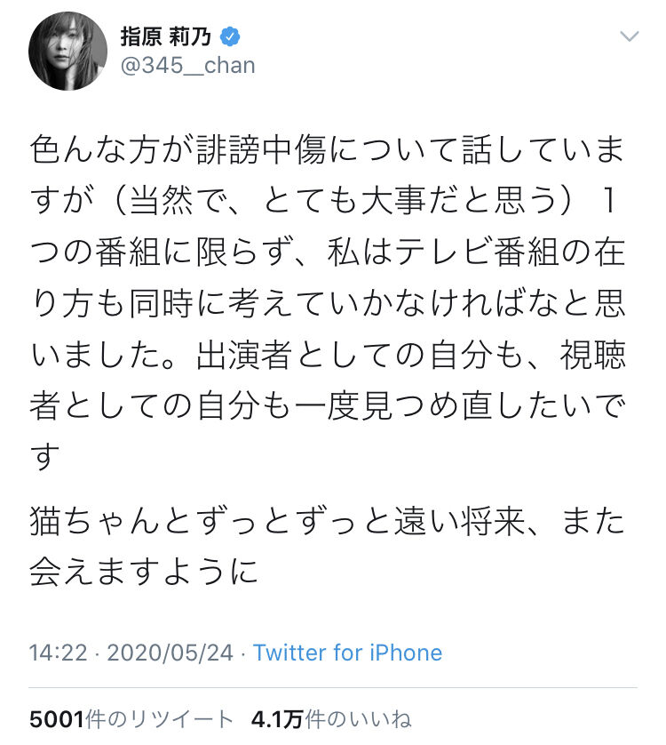 【正論】指原莉乃「色んな方が誹謗中傷について話していますが、私はテレビ番組の在り方も同時に考えていかなければなと思いました」 投稿日 2020年5月25日 13:50:48 (AKB関連) Tweet スポンサードリンク 続きを読む Source: AKB48タイムズ(AKB48まとめ) スポンサードリンク 続きを読む>> 最新情報 【朗報】AKB48のマレーシアイベント、大盛況で無事に終了!!! 【画像】この子アイドルで通用しますか?【HKT487期研究生 江浦優香13才】 【朗報】外ドラマ出演のAKB48山﨑空ちゃんの演技が上手いと話題に【あなたの恋人、強奪します。/そらら】 【朗報】近々新曲のMV撮影が行われる模様!【AKB48】 【朗報】19期研究生全員当たり!!!【AKB48劇場公演デビュー】 【朗報】ベルク×ニップン「AKB48 17期生 もちっとおいしいコラボキャンペーン」がスタート!!! 【速報】最新の久保怜音さんがキタ━━━━(゚∀゚)━━━━!!【元AKB48さとぴー】 【速報】STU48森下舞羽が卒業発表!!【まいはっち】 【AKB48】村山彩希さん、ついにインスタの個人アカウントを作る!!【ゆいリーInstagramデビュー】 【AKB48】クアラルンプール2日目、髙橋彩音ちゃんにぶっかけられて喜ぶ現地民をご覧下さい【マレーシア】 【悲報】地下アイドル現場怖い😱 女優業って正直ファンとしては辛い事ばかりで全然嬉しくないよね?【AKB48/SKE48/NMB48/HKT48/NGT48/STU48】 【朗報】元AKB48チームTP・邱品涵さん、福岡ソフトバンクホークスのチアガールに転身し大成功!!! 【AKB48】卒業記念生写真を出せるメンバーの基準ってどうなってんの? 【朗報】元AKB48奥原妃奈子さん、渋谷の大型ビジョンに現れる!【元チーム8ひーな】 昨日は岡田パッパの誕生日です【元AKB48岡田奈々】 【悲報】アイドルさん、ビラ配り中にまたしても酷い目に遭ってしまう【カリギュラのぶちあげイエロー担当ゆめぴりか】 【朗報】NGT48奈良未遥、ファースト写真集「こんな風に見られているのか?」7月1日発売決定!!! 【KLP48】クアラルンプール2日目に起こりそうなこと【AKB48】 今度こそ正真正銘のずっきーの谷間キタあああああ?【AKB48山内瑞葵】 【衝撃】松井珠理奈がアイドル復帰!マレーシア初の48姉妹グループ・KLP48プレイングマネージャーに就任決定!正式発表【元SKE48】 【AKB48】オリジナルステッカー販売終了のお知らせ【ピンポン玉チャレンジ】 【朗報】元馬嘉伶の真楪伶が1st写真集を発売決定!!【元AKB48・元まちゃりん・奇跡と出会った瞬間】 初めてAKB48劇場に入る私にアドバイス下さい!! スクエニ『トワツガイ』が僅か1年でサービス終了!大西桃香、渡辺みり愛、長谷川玲奈が実写化したのに【舞台化・元AKB48/元乃木坂46/元NGT48】 【悲報】=LOVE大谷映美里、体調不良のため本日の「個別お話し会」を欠席・・・【指原莉乃プロデュースアイドル・イコラブ・イコールラブ】 「ゆいずき」のダブルセンターというAKB48最強のカード【小栗有以・山内瑞葵】 【朗報】AKB48橋本陽菜、マレーシア移籍は断ったけど、旅行気分の数日間なら喜ぶ!!【はるぴょん】 【AKB48】メンバーが公演後に受け取ったファンレターをうpしてるのだが、どう思う? 【AKB48】正鋳真優「いつかAKBにチーム制を復活させたい」【まさるさん】 【緊急】さっほーが困ってるから誰か助けてあげてほしい【AKB48岩立沙穂】 【HKT48】村川緋杏(20才)「ハンバーガーって、お肉と野菜とパンでしょ?なんで太るん?」【びびあん】
