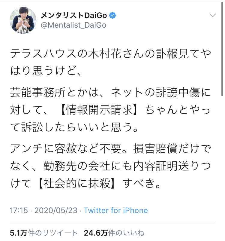 メンタリストDaiGo「誹謗中傷したやつは社会的に抹殺してやる」→弁護士「そんな仕事誰も受けない。やれば即懲戒処分になる」 投稿日 2020年5月28日 11:19:23 (AKB関連) Tweet スポンサードリンク 続きを読む Source: AKB48タイムズ(AKB48まとめ) スポンサードリンク 続きを読む>> 最新情報 【朗報】AKB48のマレーシアイベント、大盛況で無事に終了!!! 【画像】この子アイドルで通用しますか?【HKT487期研究生 江浦優香13才】 【朗報】外ドラマ出演のAKB48山﨑空ちゃんの演技が上手いと話題に【あなたの恋人、強奪します。/そらら】 【朗報】近々新曲のMV撮影が行われる模様!【AKB48】 【朗報】19期研究生全員当たり!!!【AKB48劇場公演デビュー】 【朗報】ベルク×ニップン「AKB48 17期生 もちっとおいしいコラボキャンペーン」がスタート!!! 【速報】最新の久保怜音さんがキタ━━━━(゚∀゚)━━━━!!【元AKB48さとぴー】 【速報】STU48森下舞羽が卒業発表!!【まいはっち】 【AKB48】村山彩希さん、ついにインスタの個人アカウントを作る!!【ゆいリーInstagramデビュー】 【AKB48】クアラルンプール2日目、髙橋彩音ちゃんにぶっかけられて喜ぶ現地民をご覧下さい【マレーシア】 【悲報】地下アイドル現場怖い😱 女優業って正直ファンとしては辛い事ばかりで全然嬉しくないよね?【AKB48/SKE48/NMB48/HKT48/NGT48/STU48】 【朗報】元AKB48チームTP・邱品涵さん、福岡ソフトバンクホークスのチアガールに転身し大成功!!! 【AKB48】卒業記念生写真を出せるメンバーの基準ってどうなってんの? 【朗報】元AKB48奥原妃奈子さん、渋谷の大型ビジョンに現れる!【元チーム8ひーな】 昨日は岡田パッパの誕生日です【元AKB48岡田奈々】 【悲報】アイドルさん、ビラ配り中にまたしても酷い目に遭ってしまう【カリギュラのぶちあげイエロー担当ゆめぴりか】 【朗報】NGT48奈良未遥、ファースト写真集「こんな風に見られているのか?」7月1日発売決定!!! 【KLP48】クアラルンプール2日目に起こりそうなこと【AKB48】 今度こそ正真正銘のずっきーの谷間キタあああああ?【AKB48山内瑞葵】 【衝撃】松井珠理奈がアイドル復帰!マレーシア初の48姉妹グループ・KLP48プレイングマネージャーに就任決定!正式発表【元SKE48】 【AKB48】オリジナルステッカー販売終了のお知らせ【ピンポン玉チャレンジ】 【朗報】元馬嘉伶の真楪伶が1st写真集を発売決定!!【元AKB48・元まちゃりん・奇跡と出会った瞬間】 初めてAKB48劇場に入る私にアドバイス下さい!! スクエニ『トワツガイ』が僅か1年でサービス終了!大西桃香、渡辺みり愛、長谷川玲奈が実写化したのに【舞台化・元AKB48/元乃木坂46/元NGT48】 【悲報】=LOVE大谷映美里、体調不良のため本日の「個別お話し会」を欠席・・・【指原莉乃プロデュースアイドル・イコラブ・イコールラブ】 「ゆいずき」のダブルセンターというAKB48最強のカード【小栗有以・山内瑞葵】 【朗報】AKB48橋本陽菜、マレーシア移籍は断ったけど、旅行気分の数日間なら喜ぶ!!【はるぴょん】 【AKB48】メンバーが公演後に受け取ったファンレターをうpしてるのだが、どう思う? 【AKB48】正鋳真優「いつかAKBにチーム制を復活させたい」【まさるさん】 【朗報】STU48研究生田口玲佳ちゃん、筋トレ配信中パンツが見える?放送事故wwwwww チョコレートプラネットとかいうネタが面白いのにモノマネしかやらなくなった謎芸人