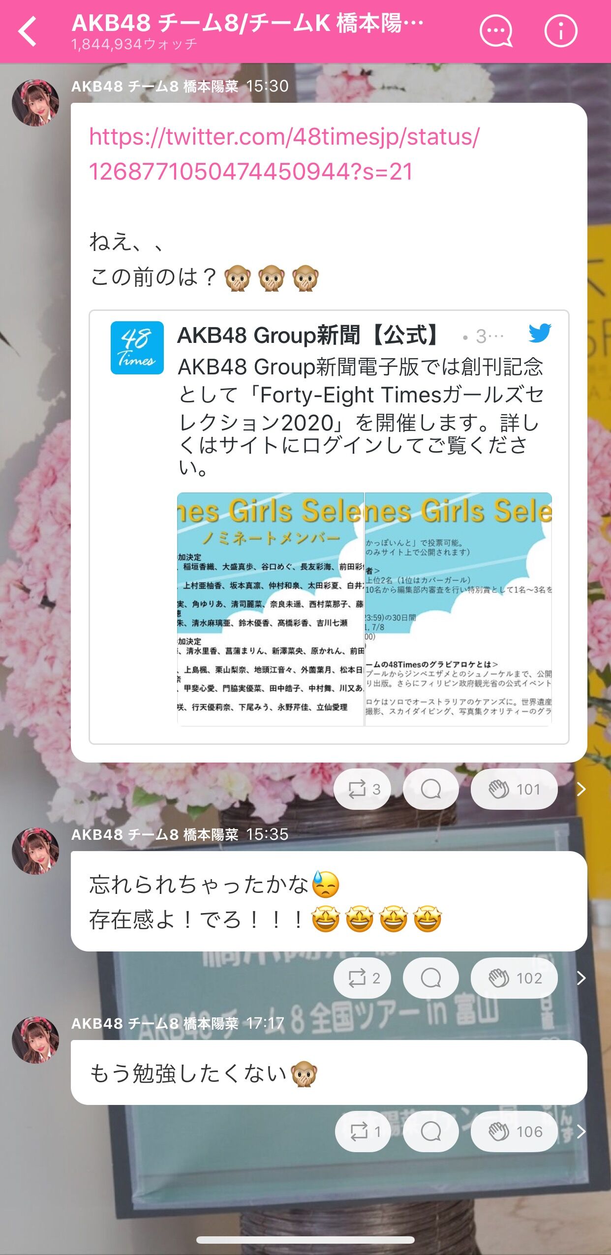 【悲報】チーム8橋本陽菜ちゃんがAKB新聞の瀬津真也に対し怒りのリツイート【AKB48はるぴょん】 投稿日 2020年6月6日 10:23:30 (AKB関連) Tweet スポンサードリンク 続きを読む Source: AKB48タイムズ(AKB48まとめ) スポンサードリンク 続きを読む>> 最新情報 【朗報】AKB48のマレーシアイベント、大盛況で無事に終了!!! 【画像】この子アイドルで通用しますか?【HKT487期研究生 江浦優香13才】 【朗報】外ドラマ出演のAKB48山﨑空ちゃんの演技が上手いと話題に【あなたの恋人、強奪します。/そらら】 【朗報】近々新曲のMV撮影が行われる模様!【AKB48】 【朗報】19期研究生全員当たり!!!【AKB48劇場公演デビュー】 【朗報】ベルク×ニップン「AKB48 17期生 もちっとおいしいコラボキャンペーン」がスタート!!! 【速報】最新の久保怜音さんがキタ━━━━(゚∀゚)━━━━!!【元AKB48さとぴー】 【速報】STU48森下舞羽が卒業発表!!【まいはっち】 【AKB48】村山彩希さん、ついにインスタの個人アカウントを作る!!【ゆいリーInstagramデビュー】 【AKB48】クアラルンプール2日目、髙橋彩音ちゃんにぶっかけられて喜ぶ現地民をご覧下さい【マレーシア】 【悲報】地下アイドル現場怖い😱 女優業って正直ファンとしては辛い事ばかりで全然嬉しくないよね?【AKB48/SKE48/NMB48/HKT48/NGT48/STU48】 【朗報】元AKB48チームTP・邱品涵さん、福岡ソフトバンクホークスのチアガールに転身し大成功!!! 【AKB48】卒業記念生写真を出せるメンバーの基準ってどうなってんの? 【朗報】元AKB48奥原妃奈子さん、渋谷の大型ビジョンに現れる!【元チーム8ひーな】 昨日は岡田パッパの誕生日です【元AKB48岡田奈々】 【悲報】アイドルさん、ビラ配り中にまたしても酷い目に遭ってしまう【カリギュラのぶちあげイエロー担当ゆめぴりか】 【朗報】NGT48奈良未遥、ファースト写真集「こんな風に見られているのか?」7月1日発売決定!!! 【KLP48】クアラルンプール2日目に起こりそうなこと【AKB48】 今度こそ正真正銘のずっきーの谷間キタあああああ?【AKB48山内瑞葵】 【衝撃】松井珠理奈がアイドル復帰!マレーシア初の48姉妹グループ・KLP48プレイングマネージャーに就任決定!正式発表【元SKE48】 【AKB48】オリジナルステッカー販売終了のお知らせ【ピンポン玉チャレンジ】 【朗報】元馬嘉伶の真楪伶が1st写真集を発売決定!!【元AKB48・元まちゃりん・奇跡と出会った瞬間】 初めてAKB48劇場に入る私にアドバイス下さい!! スクエニ『トワツガイ』が僅か1年でサービス終了!大西桃香、渡辺みり愛、長谷川玲奈が実写化したのに【舞台化・元AKB48/元乃木坂46/元NGT48】 【悲報】=LOVE大谷映美里、体調不良のため本日の「個別お話し会」を欠席・・・【指原莉乃プロデュースアイドル・イコラブ・イコールラブ】 「ゆいずき」のダブルセンターというAKB48最強のカード【小栗有以・山内瑞葵】 【朗報】AKB48橋本陽菜、マレーシア移籍は断ったけど、旅行気分の数日間なら喜ぶ!!【はるぴょん】 【AKB48】メンバーが公演後に受け取ったファンレターをうpしてるのだが、どう思う? 【AKB48】正鋳真優「いつかAKBにチーム制を復活させたい」【まさるさん】 NGT48が新シングル出したタイミングの山口真帆のツイートが意味深だと話題に!! NGT48メンバーの「おうちで握手会」の再生回数といいねの関係について、ちょっとした分析をやってみた