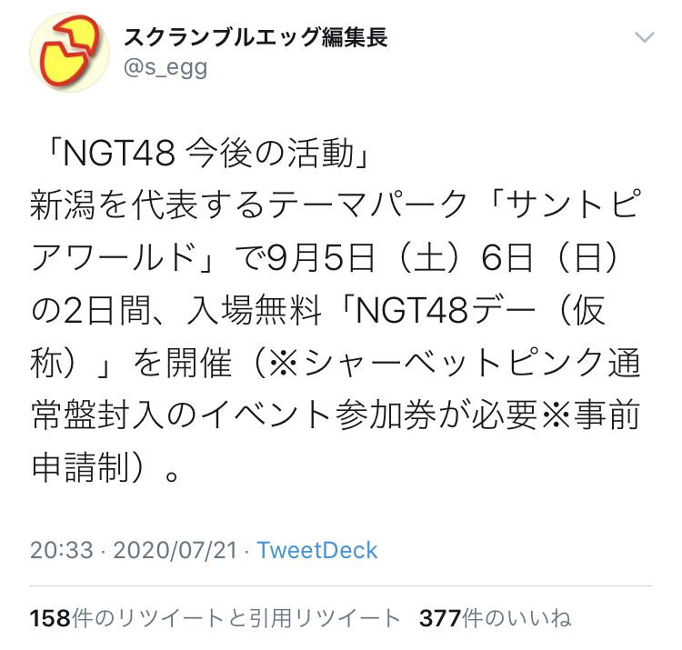 【朗報】新潟を代表するテーマパークが入場無料の「NGT48デー」を2日間開催!【シャーベットピンク】 投稿日 2020年7月23日 15:25:45 (AKB関連) Tweet スポンサードリンク 続きを読む Source: AKB48タイムズ(AKB48まとめ) スポンサードリンク 続きを読む>> 最新情報 【朗報】AKB48のマレーシアイベント、大盛況で無事に終了!!! 【画像】この子アイドルで通用しますか?【HKT487期研究生 江浦優香13才】 【朗報】外ドラマ出演のAKB48山﨑空ちゃんの演技が上手いと話題に【あなたの恋人、強奪します。/そらら】 【朗報】近々新曲のMV撮影が行われる模様!【AKB48】 【朗報】19期研究生全員当たり!!!【AKB48劇場公演デビュー】 【朗報】ベルク×ニップン「AKB48 17期生 もちっとおいしいコラボキャンペーン」がスタート!!! 【速報】最新の久保怜音さんがキタ━━━━(゚∀゚)━━━━!!【元AKB48さとぴー】 【速報】STU48森下舞羽が卒業発表!!【まいはっち】 【AKB48】村山彩希さん、ついにインスタの個人アカウントを作る!!【ゆいリーInstagramデビュー】 【AKB48】クアラルンプール2日目、髙橋彩音ちゃんにぶっかけられて喜ぶ現地民をご覧下さい【マレーシア】 【悲報】地下アイドル現場怖い😱 女優業って正直ファンとしては辛い事ばかりで全然嬉しくないよね?【AKB48/SKE48/NMB48/HKT48/NGT48/STU48】 【朗報】元AKB48チームTP・邱品涵さん、福岡ソフトバンクホークスのチアガールに転身し大成功!!! 【AKB48】卒業記念生写真を出せるメンバーの基準ってどうなってんの? 【朗報】元AKB48奥原妃奈子さん、渋谷の大型ビジョンに現れる!【元チーム8ひーな】 昨日は岡田パッパの誕生日です【元AKB48岡田奈々】 【悲報】アイドルさん、ビラ配り中にまたしても酷い目に遭ってしまう【カリギュラのぶちあげイエロー担当ゆめぴりか】 【朗報】NGT48奈良未遥、ファースト写真集「こんな風に見られているのか?」7月1日発売決定!!! 【KLP48】クアラルンプール2日目に起こりそうなこと【AKB48】 今度こそ正真正銘のずっきーの谷間キタあああああ?【AKB48山内瑞葵】 【衝撃】松井珠理奈がアイドル復帰!マレーシア初の48姉妹グループ・KLP48プレイングマネージャーに就任決定!正式発表【元SKE48】 【AKB48】オリジナルステッカー販売終了のお知らせ【ピンポン玉チャレンジ】 【朗報】元馬嘉伶の真楪伶が1st写真集を発売決定!!【元AKB48・元まちゃりん・奇跡と出会った瞬間】 初めてAKB48劇場に入る私にアドバイス下さい!! スクエニ『トワツガイ』が僅か1年でサービス終了!大西桃香、渡辺みり愛、長谷川玲奈が実写化したのに【舞台化・元AKB48/元乃木坂46/元NGT48】 【悲報】=LOVE大谷映美里、体調不良のため本日の「個別お話し会」を欠席・・・【指原莉乃プロデュースアイドル・イコラブ・イコールラブ】 「ゆいずき」のダブルセンターというAKB48最強のカード【小栗有以・山内瑞葵】 【朗報】AKB48橋本陽菜、マレーシア移籍は断ったけど、旅行気分の数日間なら喜ぶ!!【はるぴょん】 【AKB48】メンバーが公演後に受け取ったファンレターをうpしてるのだが、どう思う? 【AKB48】正鋳真優「いつかAKBにチーム制を復活させたい」【まさるさん】 男でジャニオタってやばいか? 【坂道AKB48】横山由依「誰のことを一番愛してる?を30分で覚えて踊ってみた!」横山ゆいはんがエ□い服着て巨乳になって踊ってるぞ