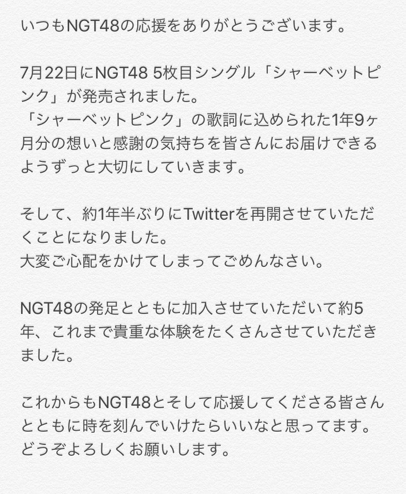 【朗報】越後の聖母ことNGT48西潟茉莉奈cがTwitter再開!!!!! 投稿日 2020年7月24日 14:57:41 (AKB関連) Tweet スポンサードリンク 続きを読む Source: AKB48タイムズ(AKB48まとめ) スポンサードリンク 続きを読む>> 最新情報 【朗報】AKB48のマレーシアイベント、大盛況で無事に終了!!! 【画像】この子アイドルで通用しますか?【HKT487期研究生 江浦優香13才】 【朗報】外ドラマ出演のAKB48山﨑空ちゃんの演技が上手いと話題に【あなたの恋人、強奪します。/そらら】 【朗報】近々新曲のMV撮影が行われる模様!【AKB48】 【朗報】19期研究生全員当たり!!!【AKB48劇場公演デビュー】 【朗報】ベルク×ニップン「AKB48 17期生 もちっとおいしいコラボキャンペーン」がスタート!!! 【速報】最新の久保怜音さんがキタ━━━━(゚∀゚)━━━━!!【元AKB48さとぴー】 【速報】STU48森下舞羽が卒業発表!!【まいはっち】 【AKB48】村山彩希さん、ついにインスタの個人アカウントを作る!!【ゆいリーInstagramデビュー】 【AKB48】クアラルンプール2日目、髙橋彩音ちゃんにぶっかけられて喜ぶ現地民をご覧下さい【マレーシア】 【悲報】地下アイドル現場怖い😱 女優業って正直ファンとしては辛い事ばかりで全然嬉しくないよね?【AKB48/SKE48/NMB48/HKT48/NGT48/STU48】 【朗報】元AKB48チームTP・邱品涵さん、福岡ソフトバンクホークスのチアガールに転身し大成功!!! 【AKB48】卒業記念生写真を出せるメンバーの基準ってどうなってんの? 【朗報】元AKB48奥原妃奈子さん、渋谷の大型ビジョンに現れる!【元チーム8ひーな】 昨日は岡田パッパの誕生日です【元AKB48岡田奈々】 【悲報】アイドルさん、ビラ配り中にまたしても酷い目に遭ってしまう【カリギュラのぶちあげイエロー担当ゆめぴりか】 【朗報】NGT48奈良未遥、ファースト写真集「こんな風に見られているのか?」7月1日発売決定!!! 【KLP48】クアラルンプール2日目に起こりそうなこと【AKB48】 今度こそ正真正銘のずっきーの谷間キタあああああ?【AKB48山内瑞葵】 【衝撃】松井珠理奈がアイドル復帰!マレーシア初の48姉妹グループ・KLP48プレイングマネージャーに就任決定!正式発表【元SKE48】 【AKB48】オリジナルステッカー販売終了のお知らせ【ピンポン玉チャレンジ】 【朗報】元馬嘉伶の真楪伶が1st写真集を発売決定!!【元AKB48・元まちゃりん・奇跡と出会った瞬間】 初めてAKB48劇場に入る私にアドバイス下さい!! スクエニ『トワツガイ』が僅か1年でサービス終了!大西桃香、渡辺みり愛、長谷川玲奈が実写化したのに【舞台化・元AKB48/元乃木坂46/元NGT48】 【悲報】=LOVE大谷映美里、体調不良のため本日の「個別お話し会」を欠席・・・【指原莉乃プロデュースアイドル・イコラブ・イコールラブ】 「ゆいずき」のダブルセンターというAKB48最強のカード【小栗有以・山内瑞葵】 【朗報】AKB48橋本陽菜、マレーシア移籍は断ったけど、旅行気分の数日間なら喜ぶ!!【はるぴょん】 【AKB48】メンバーが公演後に受け取ったファンレターをうpしてるのだが、どう思う? 【AKB48】正鋳真優「いつかAKBにチーム制を復活させたい」【まさるさん】 【悲報】ガル民さんが久々に怒りのお伺い攻撃を開始してしまう【NGT48】 川口春奈さんが自宅でまったりするだけの動画wwwww