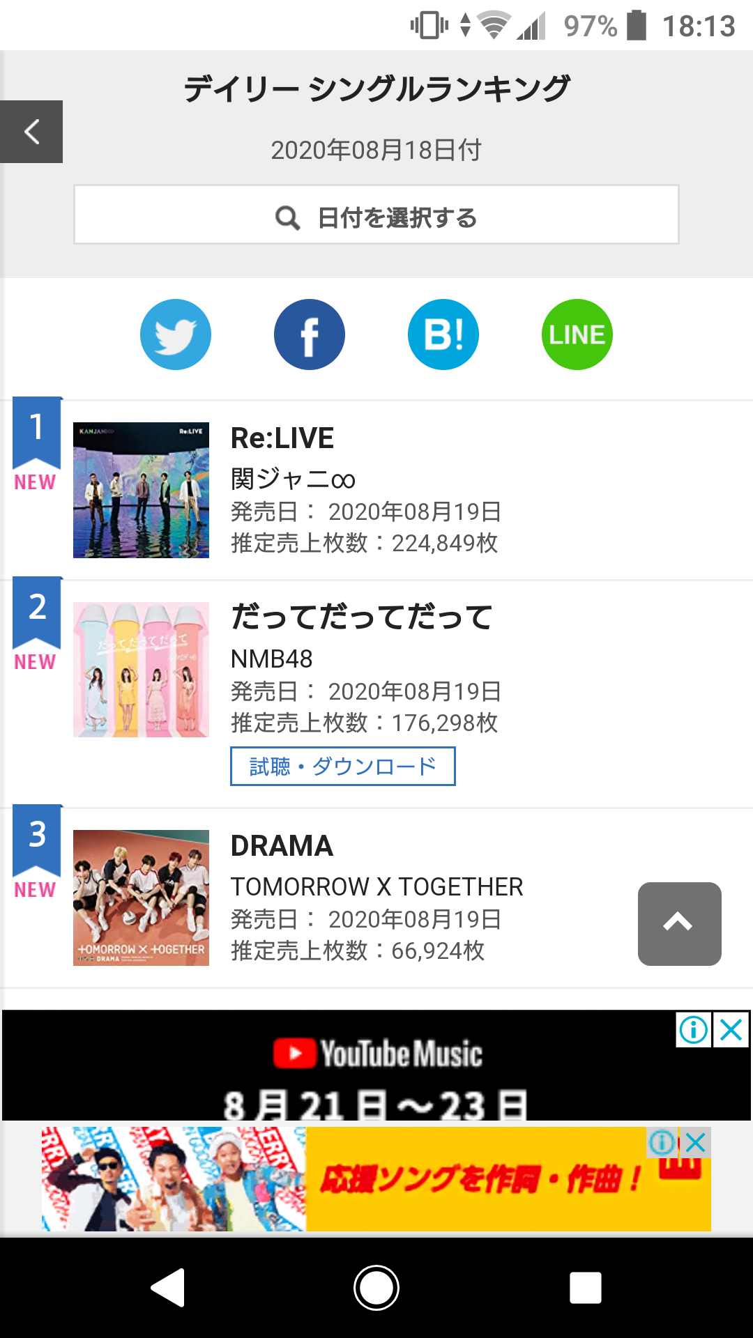 【NMB48】23rdシングル「だってだってだって」初日売上176,298枚!!!!! 投稿日 2020年8月20日 03:55:00 (AKB関連) Tweet スポンサードリンク 続きを読む Source: AKB48タイムズ(AKB48まとめ) スポンサードリンク 続きを読む>> 最新情報 【朗報】AKB48のマレーシアイベント、大盛況で無事に終了!!! 【画像】この子アイドルで通用しますか?【HKT487期研究生 江浦優香13才】 【朗報】外ドラマ出演のAKB48山﨑空ちゃんの演技が上手いと話題に【あなたの恋人、強奪します。/そらら】 【朗報】近々新曲のMV撮影が行われる模様!【AKB48】 【朗報】19期研究生全員当たり!!!【AKB48劇場公演デビュー】 【朗報】ベルク×ニップン「AKB48 17期生 もちっとおいしいコラボキャンペーン」がスタート!!! 【速報】最新の久保怜音さんがキタ━━━━(゚∀゚)━━━━!!【元AKB48さとぴー】 【速報】STU48森下舞羽が卒業発表!!【まいはっち】 【AKB48】村山彩希さん、ついにインスタの個人アカウントを作る!!【ゆいリーInstagramデビュー】 【AKB48】クアラルンプール2日目、髙橋彩音ちゃんにぶっかけられて喜ぶ現地民をご覧下さい【マレーシア】 【悲報】地下アイドル現場怖い😱 女優業って正直ファンとしては辛い事ばかりで全然嬉しくないよね?【AKB48/SKE48/NMB48/HKT48/NGT48/STU48】 【朗報】元AKB48チームTP・邱品涵さん、福岡ソフトバンクホークスのチアガールに転身し大成功!!! 【AKB48】卒業記念生写真を出せるメンバーの基準ってどうなってんの? 【朗報】元AKB48奥原妃奈子さん、渋谷の大型ビジョンに現れる!【元チーム8ひーな】 昨日は岡田パッパの誕生日です【元AKB48岡田奈々】 【悲報】アイドルさん、ビラ配り中にまたしても酷い目に遭ってしまう【カリギュラのぶちあげイエロー担当ゆめぴりか】 【朗報】NGT48奈良未遥、ファースト写真集「こんな風に見られているのか?」7月1日発売決定!!! 【KLP48】クアラルンプール2日目に起こりそうなこと【AKB48】 今度こそ正真正銘のずっきーの谷間キタあああああ?【AKB48山内瑞葵】 【衝撃】松井珠理奈がアイドル復帰!マレーシア初の48姉妹グループ・KLP48プレイングマネージャーに就任決定!正式発表【元SKE48】 【AKB48】オリジナルステッカー販売終了のお知らせ【ピンポン玉チャレンジ】 【朗報】元馬嘉伶の真楪伶が1st写真集を発売決定!!【元AKB48・元まちゃりん・奇跡と出会った瞬間】 初めてAKB48劇場に入る私にアドバイス下さい!! スクエニ『トワツガイ』が僅か1年でサービス終了!大西桃香、渡辺みり愛、長谷川玲奈が実写化したのに【舞台化・元AKB48/元乃木坂46/元NGT48】 【悲報】=LOVE大谷映美里、体調不良のため本日の「個別お話し会」を欠席・・・【指原莉乃プロデュースアイドル・イコラブ・イコールラブ】 「ゆいずき」のダブルセンターというAKB48最強のカード【小栗有以・山内瑞葵】 【朗報】AKB48橋本陽菜、マレーシア移籍は断ったけど、旅行気分の数日間なら喜ぶ!!【はるぴょん】 【AKB48】メンバーが公演後に受け取ったファンレターをうpしてるのだが、どう思う? 【AKB48】正鋳真優「いつかAKBにチーム制を復活させたい」【まさるさん】 足立梨花さんの顔面に謎のアザあったなぁ 【AKB48G】秋元康がゴーストライターを使わずに自ら作詞していることが確実っぽい曲【AKB48/SKE48/NMB48/HKT48/NGT48/STU48/チーム8】