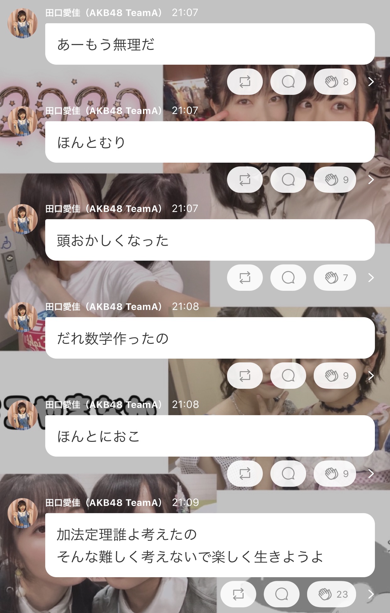【AKB48】田口愛佳さん「加法定理誰よ考えたの そんな難しく考えないで楽しく生きようよ」 投稿日 2020年8月23日 11:29:12 (AKB関連) Tweet スポンサードリンク 続きを読む Source: AKB48タイムズ(AKB48まとめ) スポンサードリンク 続きを読む>> 最新情報 【朗報】AKB48のマレーシアイベント、大盛況で無事に終了!!! 【画像】この子アイドルで通用しますか?【HKT487期研究生 江浦優香13才】 【朗報】外ドラマ出演のAKB48山﨑空ちゃんの演技が上手いと話題に【あなたの恋人、強奪します。/そらら】 【朗報】近々新曲のMV撮影が行われる模様!【AKB48】 【朗報】19期研究生全員当たり!!!【AKB48劇場公演デビュー】 【朗報】ベルク×ニップン「AKB48 17期生 もちっとおいしいコラボキャンペーン」がスタート!!! 【速報】最新の久保怜音さんがキタ━━━━(゚∀゚)━━━━!!【元AKB48さとぴー】 【速報】STU48森下舞羽が卒業発表!!【まいはっち】 【AKB48】村山彩希さん、ついにインスタの個人アカウントを作る!!【ゆいリーInstagramデビュー】 【AKB48】クアラルンプール2日目、髙橋彩音ちゃんにぶっかけられて喜ぶ現地民をご覧下さい【マレーシア】 【悲報】地下アイドル現場怖い😱 女優業って正直ファンとしては辛い事ばかりで全然嬉しくないよね?【AKB48/SKE48/NMB48/HKT48/NGT48/STU48】 【朗報】元AKB48チームTP・邱品涵さん、福岡ソフトバンクホークスのチアガールに転身し大成功!!! 【AKB48】卒業記念生写真を出せるメンバーの基準ってどうなってんの? 【朗報】元AKB48奥原妃奈子さん、渋谷の大型ビジョンに現れる!【元チーム8ひーな】 昨日は岡田パッパの誕生日です【元AKB48岡田奈々】 【悲報】アイドルさん、ビラ配り中にまたしても酷い目に遭ってしまう【カリギュラのぶちあげイエロー担当ゆめぴりか】 【朗報】NGT48奈良未遥、ファースト写真集「こんな風に見られているのか?」7月1日発売決定!!! 【KLP48】クアラルンプール2日目に起こりそうなこと【AKB48】 今度こそ正真正銘のずっきーの谷間キタあああああ?【AKB48山内瑞葵】 【衝撃】松井珠理奈がアイドル復帰!マレーシア初の48姉妹グループ・KLP48プレイングマネージャーに就任決定!正式発表【元SKE48】 【AKB48】オリジナルステッカー販売終了のお知らせ【ピンポン玉チャレンジ】 【朗報】元馬嘉伶の真楪伶が1st写真集を発売決定!!【元AKB48・元まちゃりん・奇跡と出会った瞬間】 初めてAKB48劇場に入る私にアドバイス下さい!! スクエニ『トワツガイ』が僅か1年でサービス終了!大西桃香、渡辺みり愛、長谷川玲奈が実写化したのに【舞台化・元AKB48/元乃木坂46/元NGT48】 【悲報】=LOVE大谷映美里、体調不良のため本日の「個別お話し会」を欠席・・・【指原莉乃プロデュースアイドル・イコラブ・イコールラブ】 「ゆいずき」のダブルセンターというAKB48最強のカード【小栗有以・山内瑞葵】 【朗報】AKB48橋本陽菜、マレーシア移籍は断ったけど、旅行気分の数日間なら喜ぶ!!【はるぴょん】 【AKB48】メンバーが公演後に受け取ったファンレターをうpしてるのだが、どう思う? 【AKB48】正鋳真優「いつかAKBにチーム制を復活させたい」【まさるさん】 【朗報】元NMB48渡辺美優紀「PCR検査をした結果陰性でした。引き続き安全にお仕事頑張りたいと思います!」【みるきー】 浜辺美波ちゃんの色気wwwwww