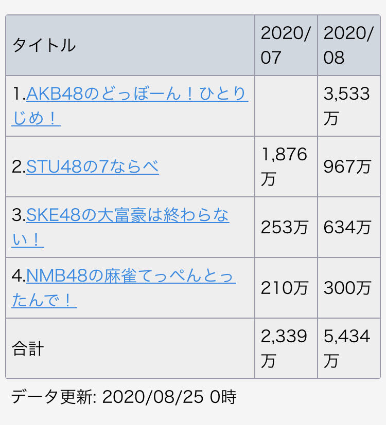 【朗報】AKB48公式ゲーム『AKB48のどっぼーん!ひとりじめ!』 、リリースから1週間でiOSのみの売上で3,500万を超える!!!!! 投稿日 2020年8月25日 16:37:20 (AKB関連) Tweet スポンサードリンク 続きを読む Source: AKB48タイムズ(AKB48まとめ) スポンサードリンク 続きを読む>> 最新情報 【朗報】AKB48のマレーシアイベント、大盛況で無事に終了!!! 【画像】この子アイドルで通用しますか?【HKT487期研究生 江浦優香13才】 【朗報】外ドラマ出演のAKB48山﨑空ちゃんの演技が上手いと話題に【あなたの恋人、強奪します。/そらら】 【朗報】近々新曲のMV撮影が行われる模様!【AKB48】 【朗報】19期研究生全員当たり!!!【AKB48劇場公演デビュー】 【朗報】ベルク×ニップン「AKB48 17期生 もちっとおいしいコラボキャンペーン」がスタート!!! 【速報】最新の久保怜音さんがキタ━━━━(゚∀゚)━━━━!!【元AKB48さとぴー】 【速報】STU48森下舞羽が卒業発表!!【まいはっち】 【AKB48】村山彩希さん、ついにインスタの個人アカウントを作る!!【ゆいリーInstagramデビュー】 【AKB48】クアラルンプール2日目、髙橋彩音ちゃんにぶっかけられて喜ぶ現地民をご覧下さい【マレーシア】 【悲報】地下アイドル現場怖い😱 女優業って正直ファンとしては辛い事ばかりで全然嬉しくないよね?【AKB48/SKE48/NMB48/HKT48/NGT48/STU48】 【朗報】元AKB48チームTP・邱品涵さん、福岡ソフトバンクホークスのチアガールに転身し大成功!!! 【AKB48】卒業記念生写真を出せるメンバーの基準ってどうなってんの? 【朗報】元AKB48奥原妃奈子さん、渋谷の大型ビジョンに現れる!【元チーム8ひーな】 昨日は岡田パッパの誕生日です【元AKB48岡田奈々】 【悲報】アイドルさん、ビラ配り中にまたしても酷い目に遭ってしまう【カリギュラのぶちあげイエロー担当ゆめぴりか】 【朗報】NGT48奈良未遥、ファースト写真集「こんな風に見られているのか?」7月1日発売決定!!! 【KLP48】クアラルンプール2日目に起こりそうなこと【AKB48】 今度こそ正真正銘のずっきーの谷間キタあああああ?【AKB48山内瑞葵】 【衝撃】松井珠理奈がアイドル復帰!マレーシア初の48姉妹グループ・KLP48プレイングマネージャーに就任決定!正式発表【元SKE48】 【AKB48】オリジナルステッカー販売終了のお知らせ【ピンポン玉チャレンジ】 【朗報】元馬嘉伶の真楪伶が1st写真集を発売決定!!【元AKB48・元まちゃりん・奇跡と出会った瞬間】 初めてAKB48劇場に入る私にアドバイス下さい!! スクエニ『トワツガイ』が僅か1年でサービス終了!大西桃香、渡辺みり愛、長谷川玲奈が実写化したのに【舞台化・元AKB48/元乃木坂46/元NGT48】 【悲報】=LOVE大谷映美里、体調不良のため本日の「個別お話し会」を欠席・・・【指原莉乃プロデュースアイドル・イコラブ・イコールラブ】 「ゆいずき」のダブルセンターというAKB48最強のカード【小栗有以・山内瑞葵】 【朗報】AKB48橋本陽菜、マレーシア移籍は断ったけど、旅行気分の数日間なら喜ぶ!!【はるぴょん】 【AKB48】メンバーが公演後に受け取ったファンレターをうpしてるのだが、どう思う? 【AKB48】正鋳真優「いつかAKBにチーム制を復活させたい」【まさるさん】 【朗報】AKB48公式ゲーム 『AKB48のどっぼーん!ひとりじめ!』、8月18日のリリースからの売上額が3,000万を超える!!!!! 【AKB48G】なんだかんだでオンラインお話会が楽しみなんだが…【AKB48/SKE48/NMB48/HKT48/NGT48/STU48/チーム8】