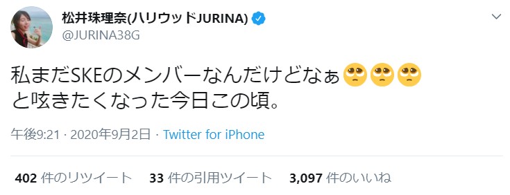 【SKE48】世界チャンピオン松井珠理奈さん「私まだSKEのメンバーなんだけどなぁ🥺🥺🥺と呟きたくなった今日この頃。」 投稿日 2020年9月4日 11:43:05 (AKB関連) Tweet スポンサードリンク 続きを読む Source: AKB48タイムズ(AKB48まとめ) スポンサードリンク 続きを読む>> 最新情報 【朗報】AKB48のマレーシアイベント、大盛況で無事に終了!!! 【画像】この子アイドルで通用しますか?【HKT487期研究生 江浦優香13才】 【朗報】外ドラマ出演のAKB48山﨑空ちゃんの演技が上手いと話題に【あなたの恋人、強奪します。/そらら】 【朗報】近々新曲のMV撮影が行われる模様!【AKB48】 【朗報】19期研究生全員当たり!!!【AKB48劇場公演デビュー】 【朗報】ベルク×ニップン「AKB48 17期生 もちっとおいしいコラボキャンペーン」がスタート!!! 【速報】最新の久保怜音さんがキタ━━━━(゚∀゚)━━━━!!【元AKB48さとぴー】 【速報】STU48森下舞羽が卒業発表!!【まいはっち】 【AKB48】村山彩希さん、ついにインスタの個人アカウントを作る!!【ゆいリーInstagramデビュー】 【AKB48】クアラルンプール2日目、髙橋彩音ちゃんにぶっかけられて喜ぶ現地民をご覧下さい【マレーシア】 【悲報】地下アイドル現場怖い😱 女優業って正直ファンとしては辛い事ばかりで全然嬉しくないよね?【AKB48/SKE48/NMB48/HKT48/NGT48/STU48】 【朗報】元AKB48チームTP・邱品涵さん、福岡ソフトバンクホークスのチアガールに転身し大成功!!! 【AKB48】卒業記念生写真を出せるメンバーの基準ってどうなってんの? 【朗報】元AKB48奥原妃奈子さん、渋谷の大型ビジョンに現れる!【元チーム8ひーな】 昨日は岡田パッパの誕生日です【元AKB48岡田奈々】 【悲報】アイドルさん、ビラ配り中にまたしても酷い目に遭ってしまう【カリギュラのぶちあげイエロー担当ゆめぴりか】 【朗報】NGT48奈良未遥、ファースト写真集「こんな風に見られているのか?」7月1日発売決定!!! 【KLP48】クアラルンプール2日目に起こりそうなこと【AKB48】 今度こそ正真正銘のずっきーの谷間キタあああああ?【AKB48山内瑞葵】 【衝撃】松井珠理奈がアイドル復帰!マレーシア初の48姉妹グループ・KLP48プレイングマネージャーに就任決定!正式発表【元SKE48】 【AKB48】オリジナルステッカー販売終了のお知らせ【ピンポン玉チャレンジ】 【朗報】元馬嘉伶の真楪伶が1st写真集を発売決定!!【元AKB48・元まちゃりん・奇跡と出会った瞬間】 初めてAKB48劇場に入る私にアドバイス下さい!! スクエニ『トワツガイ』が僅か1年でサービス終了!大西桃香、渡辺みり愛、長谷川玲奈が実写化したのに【舞台化・元AKB48/元乃木坂46/元NGT48】 【悲報】=LOVE大谷映美里、体調不良のため本日の「個別お話し会」を欠席・・・【指原莉乃プロデュースアイドル・イコラブ・イコールラブ】 「ゆいずき」のダブルセンターというAKB48最強のカード【小栗有以・山内瑞葵】 【朗報】AKB48橋本陽菜、マレーシア移籍は断ったけど、旅行気分の数日間なら喜ぶ!!【はるぴょん】 【AKB48】メンバーが公演後に受け取ったファンレターをうpしてるのだが、どう思う? 【AKB48】正鋳真優「いつかAKBにチーム制を復活させたい」【まさるさん】 【朗報】木下優樹菜さん、裁判前に余裕の復活wwwwww 3時のヒロインはクッソ不快なのにぼる塾は別に大丈夫という不思議