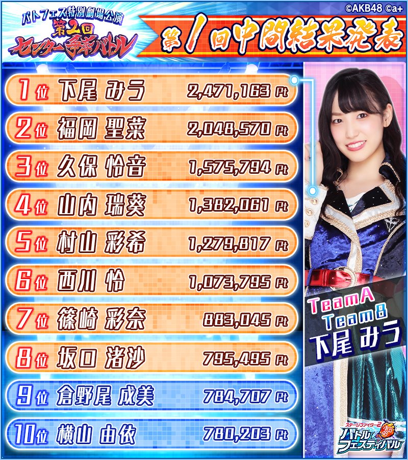 【AKB48】バトフェス『第2回センター争奪バトル』第1回中間結果発表キタ━━━━(゚∀゚)━━━━!! 投稿日 2020年10月6日 15:03:25 (AKB関連) Tweet スポンサードリンク 続きを読む Source: AKB48タイムズ(AKB48まとめ) スポンサードリンク 続きを読む>> 最新情報 【朗報】AKB48のマレーシアイベント、大盛況で無事に終了!!! 【画像】この子アイドルで通用しますか?【HKT487期研究生 江浦優香13才】 【朗報】外ドラマ出演のAKB48山﨑空ちゃんの演技が上手いと話題に【あなたの恋人、強奪します。/そらら】 【朗報】近々新曲のMV撮影が行われる模様!【AKB48】 【朗報】19期研究生全員当たり!!!【AKB48劇場公演デビュー】 【朗報】ベルク×ニップン「AKB48 17期生 もちっとおいしいコラボキャンペーン」がスタート!!! 【速報】最新の久保怜音さんがキタ━━━━(゚∀゚)━━━━!!【元AKB48さとぴー】 【速報】STU48森下舞羽が卒業発表!!【まいはっち】 【AKB48】村山彩希さん、ついにインスタの個人アカウントを作る!!【ゆいリーInstagramデビュー】 【AKB48】クアラルンプール2日目、髙橋彩音ちゃんにぶっかけられて喜ぶ現地民をご覧下さい【マレーシア】 【悲報】地下アイドル現場怖い😱 女優業って正直ファンとしては辛い事ばかりで全然嬉しくないよね?【AKB48/SKE48/NMB48/HKT48/NGT48/STU48】 【朗報】元AKB48チームTP・邱品涵さん、福岡ソフトバンクホークスのチアガールに転身し大成功!!! 【AKB48】卒業記念生写真を出せるメンバーの基準ってどうなってんの? 【朗報】元AKB48奥原妃奈子さん、渋谷の大型ビジョンに現れる!【元チーム8ひーな】 昨日は岡田パッパの誕生日です【元AKB48岡田奈々】 【悲報】アイドルさん、ビラ配り中にまたしても酷い目に遭ってしまう【カリギュラのぶちあげイエロー担当ゆめぴりか】 【朗報】NGT48奈良未遥、ファースト写真集「こんな風に見られているのか?」7月1日発売決定!!! 【KLP48】クアラルンプール2日目に起こりそうなこと【AKB48】 今度こそ正真正銘のずっきーの谷間キタあああああ?【AKB48山内瑞葵】 【衝撃】松井珠理奈がアイドル復帰!マレーシア初の48姉妹グループ・KLP48プレイングマネージャーに就任決定!正式発表【元SKE48】 【AKB48】オリジナルステッカー販売終了のお知らせ【ピンポン玉チャレンジ】 【朗報】元馬嘉伶の真楪伶が1st写真集を発売決定!!【元AKB48・元まちゃりん・奇跡と出会った瞬間】 初めてAKB48劇場に入る私にアドバイス下さい!! スクエニ『トワツガイ』が僅か1年でサービス終了!大西桃香、渡辺みり愛、長谷川玲奈が実写化したのに【舞台化・元AKB48/元乃木坂46/元NGT48】 【悲報】=LOVE大谷映美里、体調不良のため本日の「個別お話し会」を欠席・・・【指原莉乃プロデュースアイドル・イコラブ・イコールラブ】 「ゆいずき」のダブルセンターというAKB48最強のカード【小栗有以・山内瑞葵】 【朗報】AKB48橋本陽菜、マレーシア移籍は断ったけど、旅行気分の数日間なら喜ぶ!!【はるぴょん】 【AKB48】メンバーが公演後に受け取ったファンレターをうpしてるのだが、どう思う? 【AKB48】正鋳真優「いつかAKBにチーム制を復活させたい」【まさるさん】 泉里香がキレイすぎるwwwwwww 新潟や愛媛が舞台のアニメってあるの?