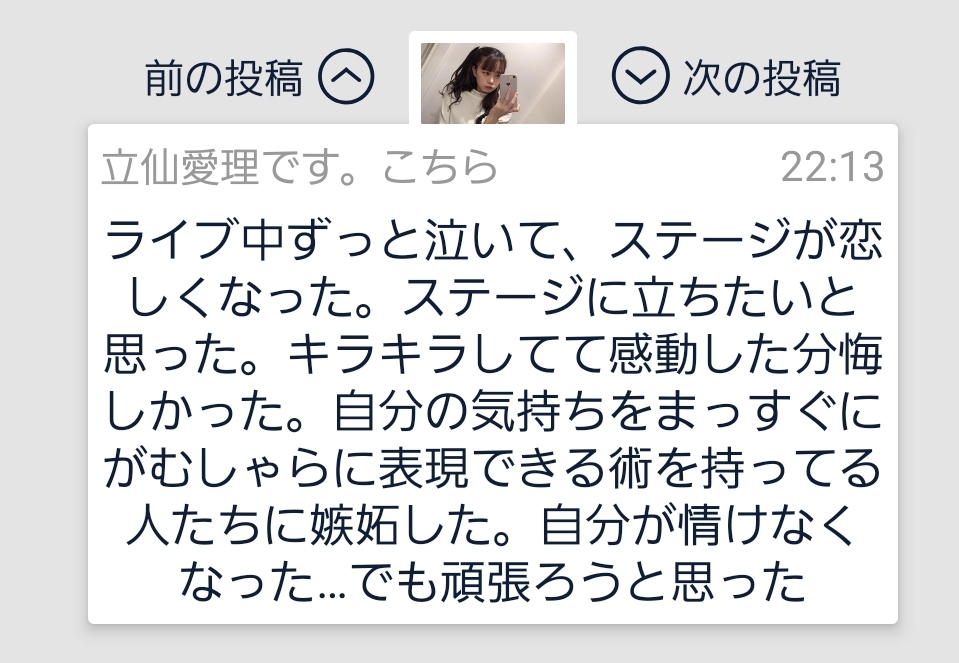 【悲報】元チーム8立仙愛理号泣き「ステージが恋しい。ステージに立ちたい」【元AKB48】 投稿日 2021年7月14日 01:27:08 (AKB関連) Tweet スポンサードリンク 続きを読む Source: AKB48タイムズ(AKB48まとめ) スポンサードリンク 続きを読む>> 最新情報 【朗報】AKB48のマレーシアイベント、大盛況で無事に終了!!! 【画像】この子アイドルで通用しますか?【HKT487期研究生 江浦優香13才】 【朗報】外ドラマ出演のAKB48山﨑空ちゃんの演技が上手いと話題に【あなたの恋人、強奪します。/そらら】 【朗報】近々新曲のMV撮影が行われる模様!【AKB48】 【朗報】19期研究生全員当たり!!!【AKB48劇場公演デビュー】 【朗報】ベルク×ニップン「AKB48 17期生 もちっとおいしいコラボキャンペーン」がスタート!!! 【速報】最新の久保怜音さんがキタ━━━━(゚∀゚)━━━━!!【元AKB48さとぴー】 【速報】STU48森下舞羽が卒業発表!!【まいはっち】 【AKB48】村山彩希さん、ついにインスタの個人アカウントを作る!!【ゆいリーInstagramデビュー】 【AKB48】クアラルンプール2日目、髙橋彩音ちゃんにぶっかけられて喜ぶ現地民をご覧下さい【マレーシア】 【悲報】地下アイドル現場怖い😱 女優業って正直ファンとしては辛い事ばかりで全然嬉しくないよね?【AKB48/SKE48/NMB48/HKT48/NGT48/STU48】 【朗報】元AKB48チームTP・邱品涵さん、福岡ソフトバンクホークスのチアガールに転身し大成功!!! 【AKB48】卒業記念生写真を出せるメンバーの基準ってどうなってんの? 【朗報】元AKB48奥原妃奈子さん、渋谷の大型ビジョンに現れる!【元チーム8ひーな】 昨日は岡田パッパの誕生日です【元AKB48岡田奈々】 【悲報】アイドルさん、ビラ配り中にまたしても酷い目に遭ってしまう【カリギュラのぶちあげイエロー担当ゆめぴりか】 【朗報】NGT48奈良未遥、ファースト写真集「こんな風に見られているのか?」7月1日発売決定!!! 【KLP48】クアラルンプール2日目に起こりそうなこと【AKB48】 今度こそ正真正銘のずっきーの谷間キタあああああ?【AKB48山内瑞葵】 【衝撃】松井珠理奈がアイドル復帰!マレーシア初の48姉妹グループ・KLP48プレイングマネージャーに就任決定!正式発表【元SKE48】 【AKB48】オリジナルステッカー販売終了のお知らせ【ピンポン玉チャレンジ】 【朗報】元馬嘉伶の真楪伶が1st写真集を発売決定!!【元AKB48・元まちゃりん・奇跡と出会った瞬間】 初めてAKB48劇場に入る私にアドバイス下さい!! スクエニ『トワツガイ』が僅か1年でサービス終了!大西桃香、渡辺みり愛、長谷川玲奈が実写化したのに【舞台化・元AKB48/元乃木坂46/元NGT48】 【悲報】=LOVE大谷映美里、体調不良のため本日の「個別お話し会」を欠席・・・【指原莉乃プロデュースアイドル・イコラブ・イコールラブ】 「ゆいずき」のダブルセンターというAKB48最強のカード【小栗有以・山内瑞葵】 【朗報】AKB48橋本陽菜、マレーシア移籍は断ったけど、旅行気分の数日間なら喜ぶ!!【はるぴょん】 【AKB48】メンバーが公演後に受け取ったファンレターをうpしてるのだが、どう思う? 【AKB48】正鋳真優「いつかAKBにチーム制を復活させたい」【まさるさん】 【悲報】NiziU、跡形もなく綺麗サッパリ消える? 横島亜衿ちゃんってめちゃくちゃ人気出ると思ってたよな?【AKB48ドラフト1期生】