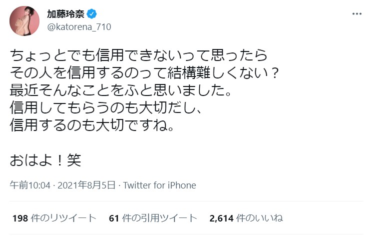 【AKB48】加藤玲奈「ちょっとでも信用できないと思ったら(今後)その人を信用するのは難しい」←鈴木優香の事?【れなっち・チーム8ゆうかりん】 投稿日 2021年8月6日 12:41:42 (AKB関連) Tweet スポンサードリンク 続きを読む Source: AKB48タイムズ(AKB48まとめ) スポンサードリンク 続きを読む>> 最新情報 【朗報】AKB48のマレーシアイベント、大盛況で無事に終了!!! 【画像】この子アイドルで通用しますか?【HKT487期研究生 江浦優香13才】 【朗報】外ドラマ出演のAKB48山﨑空ちゃんの演技が上手いと話題に【あなたの恋人、強奪します。/そらら】 【朗報】近々新曲のMV撮影が行われる模様!【AKB48】 【朗報】19期研究生全員当たり!!!【AKB48劇場公演デビュー】 【朗報】ベルク×ニップン「AKB48 17期生 もちっとおいしいコラボキャンペーン」がスタート!!! 【速報】最新の久保怜音さんがキタ━━━━(゚∀゚)━━━━!!【元AKB48さとぴー】 【速報】STU48森下舞羽が卒業発表!!【まいはっち】 【AKB48】村山彩希さん、ついにインスタの個人アカウントを作る!!【ゆいリーInstagramデビュー】 【AKB48】クアラルンプール2日目、髙橋彩音ちゃんにぶっかけられて喜ぶ現地民をご覧下さい【マレーシア】 【悲報】地下アイドル現場怖い😱 女優業って正直ファンとしては辛い事ばかりで全然嬉しくないよね?【AKB48/SKE48/NMB48/HKT48/NGT48/STU48】 【朗報】元AKB48チームTP・邱品涵さん、福岡ソフトバンクホークスのチアガールに転身し大成功!!! 【AKB48】卒業記念生写真を出せるメンバーの基準ってどうなってんの? 【朗報】元AKB48奥原妃奈子さん、渋谷の大型ビジョンに現れる!【元チーム8ひーな】 昨日は岡田パッパの誕生日です【元AKB48岡田奈々】 【悲報】アイドルさん、ビラ配り中にまたしても酷い目に遭ってしまう【カリギュラのぶちあげイエロー担当ゆめぴりか】 【朗報】NGT48奈良未遥、ファースト写真集「こんな風に見られているのか?」7月1日発売決定!!! 【KLP48】クアラルンプール2日目に起こりそうなこと【AKB48】 今度こそ正真正銘のずっきーの谷間キタあああああ?【AKB48山内瑞葵】 【衝撃】松井珠理奈がアイドル復帰!マレーシア初の48姉妹グループ・KLP48プレイングマネージャーに就任決定!正式発表【元SKE48】 【AKB48】オリジナルステッカー販売終了のお知らせ【ピンポン玉チャレンジ】 【朗報】元馬嘉伶の真楪伶が1st写真集を発売決定!!【元AKB48・元まちゃりん・奇跡と出会った瞬間】 初めてAKB48劇場に入る私にアドバイス下さい!! スクエニ『トワツガイ』が僅か1年でサービス終了!大西桃香、渡辺みり愛、長谷川玲奈が実写化したのに【舞台化・元AKB48/元乃木坂46/元NGT48】 【悲報】=LOVE大谷映美里、体調不良のため本日の「個別お話し会」を欠席・・・【指原莉乃プロデュースアイドル・イコラブ・イコールラブ】 「ゆいずき」のダブルセンターというAKB48最強のカード【小栗有以・山内瑞葵】 【朗報】AKB48橋本陽菜、マレーシア移籍は断ったけど、旅行気分の数日間なら喜ぶ!!【はるぴょん】 【AKB48】メンバーが公演後に受け取ったファンレターをうpしてるのだが、どう思う? 【AKB48】正鋳真優「いつかAKBにチーム制を復活させたい」【まさるさん】 高畑充希「かわいいです、偏差値68です」←完璧すぎやろ 8月7日(土)21:30~公式YoutubeにてAKB48より重大発表あり!!!