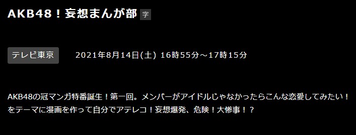 【朗報】AKB48にまたもや地上波で冠番組キタ━━(((゚∀゚)))━━━━━!!「AKB48!妄想まんが部」 投稿日 2021年8月8日 11:44:16 (AKB関連) Tweet スポンサードリンク 続きを読む Source: AKB48タイムズ(AKB48まとめ) スポンサードリンク 続きを読む>> 最新情報 【朗報】AKB48のマレーシアイベント、大盛況で無事に終了!!! 【画像】この子アイドルで通用しますか?【HKT487期研究生 江浦優香13才】 【朗報】外ドラマ出演のAKB48山﨑空ちゃんの演技が上手いと話題に【あなたの恋人、強奪します。/そらら】 【朗報】近々新曲のMV撮影が行われる模様!【AKB48】 【朗報】19期研究生全員当たり!!!【AKB48劇場公演デビュー】 【朗報】ベルク×ニップン「AKB48 17期生 もちっとおいしいコラボキャンペーン」がスタート!!! 【速報】最新の久保怜音さんがキタ━━━━(゚∀゚)━━━━!!【元AKB48さとぴー】 【速報】STU48森下舞羽が卒業発表!!【まいはっち】 【AKB48】村山彩希さん、ついにインスタの個人アカウントを作る!!【ゆいリーInstagramデビュー】 【AKB48】クアラルンプール2日目、髙橋彩音ちゃんにぶっかけられて喜ぶ現地民をご覧下さい【マレーシア】 【悲報】地下アイドル現場怖い😱 女優業って正直ファンとしては辛い事ばかりで全然嬉しくないよね?【AKB48/SKE48/NMB48/HKT48/NGT48/STU48】 【朗報】元AKB48チームTP・邱品涵さん、福岡ソフトバンクホークスのチアガールに転身し大成功!!! 【AKB48】卒業記念生写真を出せるメンバーの基準ってどうなってんの? 【朗報】元AKB48奥原妃奈子さん、渋谷の大型ビジョンに現れる!【元チーム8ひーな】 昨日は岡田パッパの誕生日です【元AKB48岡田奈々】 【悲報】アイドルさん、ビラ配り中にまたしても酷い目に遭ってしまう【カリギュラのぶちあげイエロー担当ゆめぴりか】 【朗報】NGT48奈良未遥、ファースト写真集「こんな風に見られているのか?」7月1日発売決定!!! 【KLP48】クアラルンプール2日目に起こりそうなこと【AKB48】 今度こそ正真正銘のずっきーの谷間キタあああああ?【AKB48山内瑞葵】 【衝撃】松井珠理奈がアイドル復帰!マレーシア初の48姉妹グループ・KLP48プレイングマネージャーに就任決定!正式発表【元SKE48】 【AKB48】オリジナルステッカー販売終了のお知らせ【ピンポン玉チャレンジ】 【朗報】元馬嘉伶の真楪伶が1st写真集を発売決定!!【元AKB48・元まちゃりん・奇跡と出会った瞬間】 初めてAKB48劇場に入る私にアドバイス下さい!! スクエニ『トワツガイ』が僅か1年でサービス終了!大西桃香、渡辺みり愛、長谷川玲奈が実写化したのに【舞台化・元AKB48/元乃木坂46/元NGT48】 【悲報】=LOVE大谷映美里、体調不良のため本日の「個別お話し会」を欠席・・・【指原莉乃プロデュースアイドル・イコラブ・イコールラブ】 「ゆいずき」のダブルセンターというAKB48最強のカード【小栗有以・山内瑞葵】 【朗報】AKB48橋本陽菜、マレーシア移籍は断ったけど、旅行気分の数日間なら喜ぶ!!【はるぴょん】 【AKB48】メンバーが公演後に受け取ったファンレターをうpしてるのだが、どう思う? 【AKB48】正鋳真優「いつかAKBにチーム制を復活させたい」【まさるさん】 AKB48の重大発表の内容は!新公式ゲームアプリ『AKB48 WORLD』の発表とディザー映像公開!! さらば森田「見取り図リリーがイカついくらいモテてる」