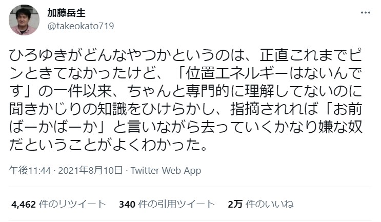 東大准教授加藤岳生「ひろゆきは聞きかじりの知識をひけらかし、指摘されたらばーかと言って去っていく嫌な奴」 投稿日 2021年8月13日 14:59:34 (AKB関連) Tweet スポンサードリンク 続きを読む Source: AKB48タイムズ(AKB48まとめ) スポンサードリンク 続きを読む>> 最新情報 【朗報】AKB48のマレーシアイベント、大盛況で無事に終了!!! 【画像】この子アイドルで通用しますか?【HKT487期研究生 江浦優香13才】 【朗報】外ドラマ出演のAKB48山﨑空ちゃんの演技が上手いと話題に【あなたの恋人、強奪します。/そらら】 【朗報】近々新曲のMV撮影が行われる模様!【AKB48】 【朗報】19期研究生全員当たり!!!【AKB48劇場公演デビュー】 【朗報】ベルク×ニップン「AKB48 17期生 もちっとおいしいコラボキャンペーン」がスタート!!! 【速報】最新の久保怜音さんがキタ━━━━(゚∀゚)━━━━!!【元AKB48さとぴー】 【速報】STU48森下舞羽が卒業発表!!【まいはっち】 【AKB48】村山彩希さん、ついにインスタの個人アカウントを作る!!【ゆいリーInstagramデビュー】 【AKB48】クアラルンプール2日目、髙橋彩音ちゃんにぶっかけられて喜ぶ現地民をご覧下さい【マレーシア】 【悲報】地下アイドル現場怖い😱 女優業って正直ファンとしては辛い事ばかりで全然嬉しくないよね?【AKB48/SKE48/NMB48/HKT48/NGT48/STU48】 【朗報】元AKB48チームTP・邱品涵さん、福岡ソフトバンクホークスのチアガールに転身し大成功!!! 【AKB48】卒業記念生写真を出せるメンバーの基準ってどうなってんの? 【朗報】元AKB48奥原妃奈子さん、渋谷の大型ビジョンに現れる!【元チーム8ひーな】 昨日は岡田パッパの誕生日です【元AKB48岡田奈々】 【悲報】アイドルさん、ビラ配り中にまたしても酷い目に遭ってしまう【カリギュラのぶちあげイエロー担当ゆめぴりか】 【朗報】NGT48奈良未遥、ファースト写真集「こんな風に見られているのか?」7月1日発売決定!!! 【KLP48】クアラルンプール2日目に起こりそうなこと【AKB48】 今度こそ正真正銘のずっきーの谷間キタあああああ?【AKB48山内瑞葵】 【衝撃】松井珠理奈がアイドル復帰!マレーシア初の48姉妹グループ・KLP48プレイングマネージャーに就任決定!正式発表【元SKE48】 【AKB48】オリジナルステッカー販売終了のお知らせ【ピンポン玉チャレンジ】 【朗報】元馬嘉伶の真楪伶が1st写真集を発売決定!!【元AKB48・元まちゃりん・奇跡と出会った瞬間】 初めてAKB48劇場に入る私にアドバイス下さい!! スクエニ『トワツガイ』が僅か1年でサービス終了!大西桃香、渡辺みり愛、長谷川玲奈が実写化したのに【舞台化・元AKB48/元乃木坂46/元NGT48】 【悲報】=LOVE大谷映美里、体調不良のため本日の「個別お話し会」を欠席・・・【指原莉乃プロデュースアイドル・イコラブ・イコールラブ】 「ゆいずき」のダブルセンターというAKB48最強のカード【小栗有以・山内瑞葵】 【朗報】AKB48橋本陽菜、マレーシア移籍は断ったけど、旅行気分の数日間なら喜ぶ!!【はるぴょん】 【AKB48】メンバーが公演後に受け取ったファンレターをうpしてるのだが、どう思う? 【AKB48】正鋳真優「いつかAKBにチーム制を復活させたい」【まさるさん】 今更ジョイマンのファンになったんだが 【AKB48】歌田初夏ちゃんのドスケベマイクロビキニグラビアまだ?【チーム8はっつ】