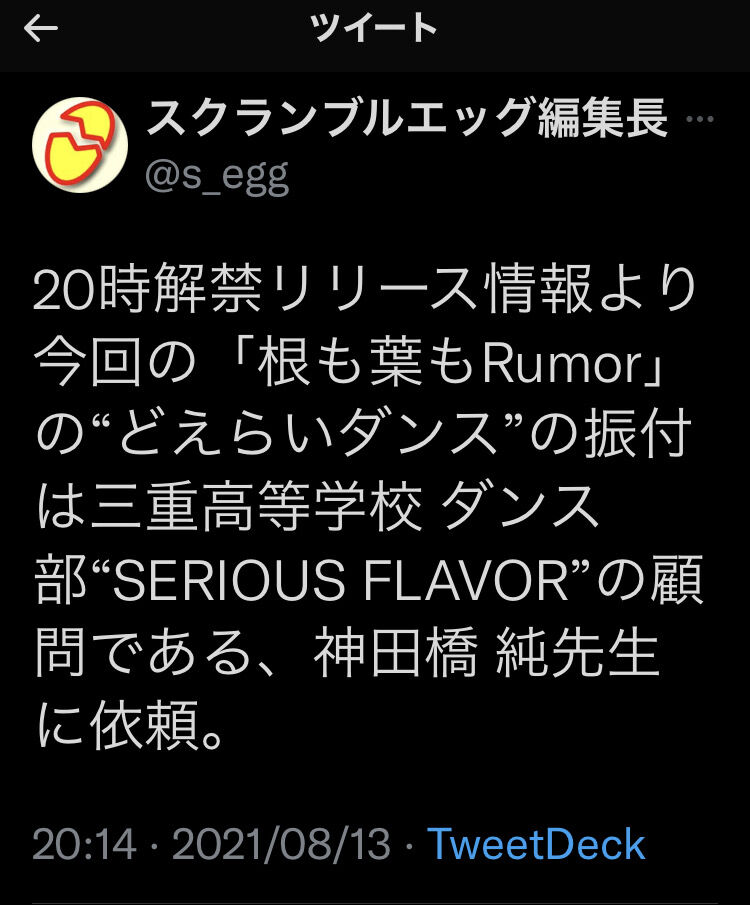 【朗報】今回のAKB48「根も葉もRumor」のダンス振付は三重高校ダンス部顧問である神田橋純先生であることが判明!!! 投稿日 2021年8月15日 03:53:05 (AKB関連) Tweet スポンサードリンク 続きを読む Source: AKB48タイムズ(AKB48まとめ) スポンサードリンク 続きを読む>> 最新情報 【朗報】AKB48のマレーシアイベント、大盛況で無事に終了!!! 【画像】この子アイドルで通用しますか?【HKT487期研究生 江浦優香13才】 【朗報】外ドラマ出演のAKB48山﨑空ちゃんの演技が上手いと話題に【あなたの恋人、強奪します。/そらら】 【朗報】近々新曲のMV撮影が行われる模様!【AKB48】 【朗報】19期研究生全員当たり!!!【AKB48劇場公演デビュー】 【朗報】ベルク×ニップン「AKB48 17期生 もちっとおいしいコラボキャンペーン」がスタート!!! 【速報】最新の久保怜音さんがキタ━━━━(゚∀゚)━━━━!!【元AKB48さとぴー】 【速報】STU48森下舞羽が卒業発表!!【まいはっち】 【AKB48】村山彩希さん、ついにインスタの個人アカウントを作る!!【ゆいリーInstagramデビュー】 【AKB48】クアラルンプール2日目、髙橋彩音ちゃんにぶっかけられて喜ぶ現地民をご覧下さい【マレーシア】 【悲報】地下アイドル現場怖い😱 女優業って正直ファンとしては辛い事ばかりで全然嬉しくないよね?【AKB48/SKE48/NMB48/HKT48/NGT48/STU48】 【朗報】元AKB48チームTP・邱品涵さん、福岡ソフトバンクホークスのチアガールに転身し大成功!!! 【AKB48】卒業記念生写真を出せるメンバーの基準ってどうなってんの? 【朗報】元AKB48奥原妃奈子さん、渋谷の大型ビジョンに現れる!【元チーム8ひーな】 昨日は岡田パッパの誕生日です【元AKB48岡田奈々】 【悲報】アイドルさん、ビラ配り中にまたしても酷い目に遭ってしまう【カリギュラのぶちあげイエロー担当ゆめぴりか】 【朗報】NGT48奈良未遥、ファースト写真集「こんな風に見られているのか?」7月1日発売決定!!! 【KLP48】クアラルンプール2日目に起こりそうなこと【AKB48】 今度こそ正真正銘のずっきーの谷間キタあああああ?【AKB48山内瑞葵】 【衝撃】松井珠理奈がアイドル復帰!マレーシア初の48姉妹グループ・KLP48プレイングマネージャーに就任決定!正式発表【元SKE48】 【AKB48】オリジナルステッカー販売終了のお知らせ【ピンポン玉チャレンジ】 【朗報】元馬嘉伶の真楪伶が1st写真集を発売決定!!【元AKB48・元まちゃりん・奇跡と出会った瞬間】 初めてAKB48劇場に入る私にアドバイス下さい!! スクエニ『トワツガイ』が僅か1年でサービス終了!大西桃香、渡辺みり愛、長谷川玲奈が実写化したのに【舞台化・元AKB48/元乃木坂46/元NGT48】 【悲報】=LOVE大谷映美里、体調不良のため本日の「個別お話し会」を欠席・・・【指原莉乃プロデュースアイドル・イコラブ・イコールラブ】 「ゆいずき」のダブルセンターというAKB48最強のカード【小栗有以・山内瑞葵】 【朗報】AKB48橋本陽菜、マレーシア移籍は断ったけど、旅行気分の数日間なら喜ぶ!!【はるぴょん】 【AKB48】メンバーが公演後に受け取ったファンレターをうpしてるのだが、どう思う? 【AKB48】正鋳真優「いつかAKBにチーム制を復活させたい」【まさるさん】 【悲報】ゆいゆい大ピンチ?KeyHolderでコロナ感染者が発生し全社臨時休業【AKB48・チーム8小栗有以】 【闇深】大森靖子、ZOC・巫まろへのパワハラの音声が流出がヤバ過ぎる・・・